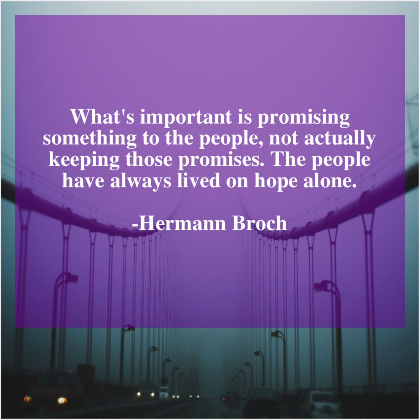 “What’s important is promising something to the people, not actually keeping those promises. The people have always lived on hope alone.”
