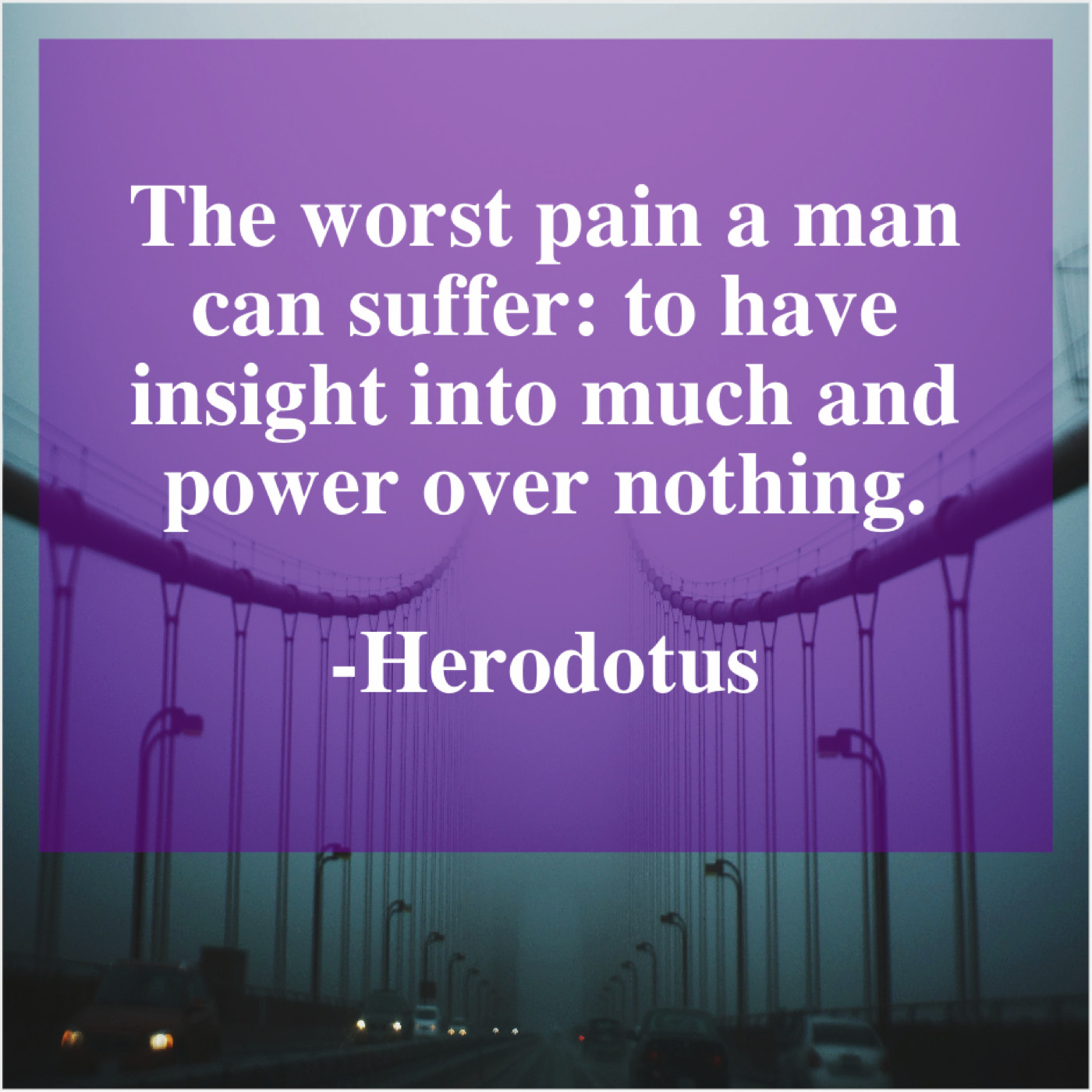Herodotus Herodotus – The worst pain a man… June 26, 2019 admin “The worst pain a man can suffer: to have insight into much and power over nothing.”-Herodotus