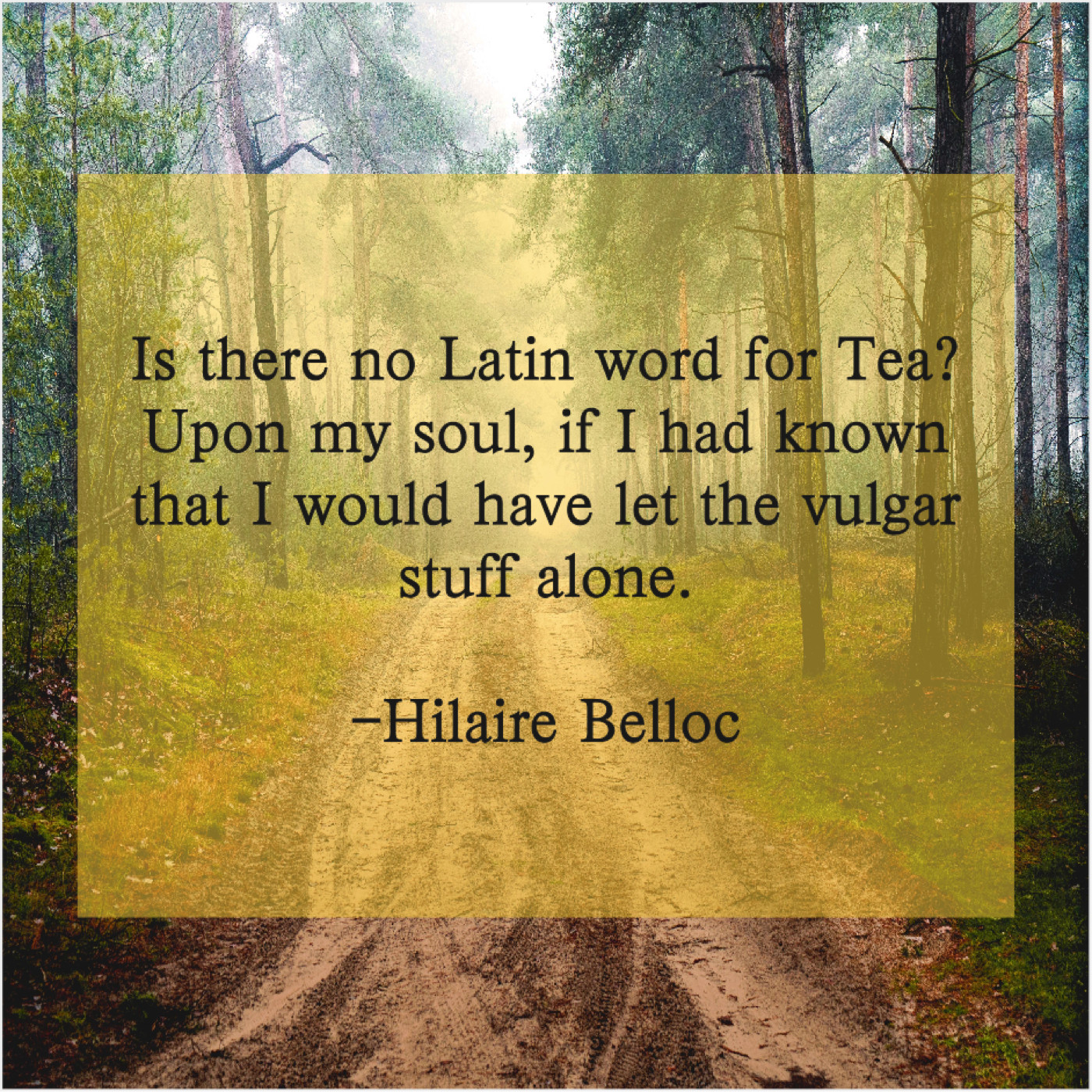 Hilaire Belloc Hilaire Belloc – Is there no Latin word… June 10, 2019 admin “Is there no Latin word for Tea? Upon my soul, if I had known that I would have let the vulgar stuff alone.”-Hilaire Belloc