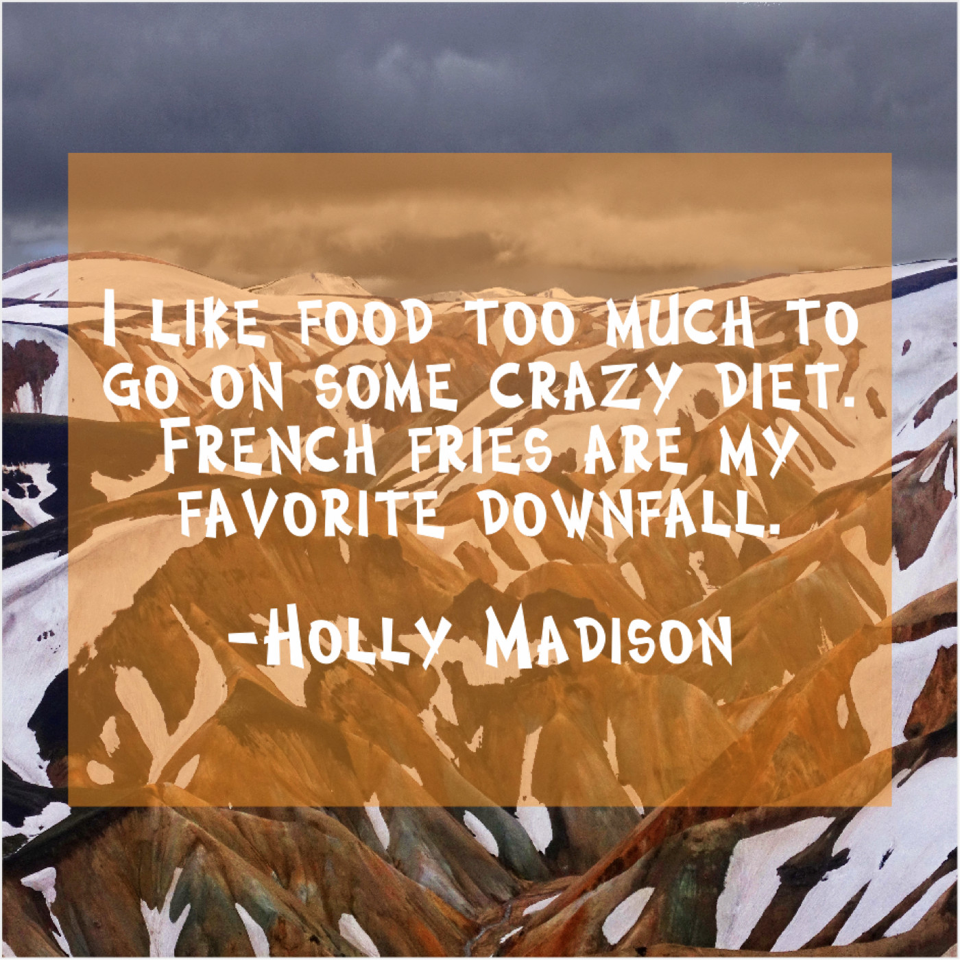 Holly Madison Holly Madison – I like food too much… November 15, 2018 admin “I like food too much to go on some crazy diet. French fries are my favorite downfall.”-Holly Madison