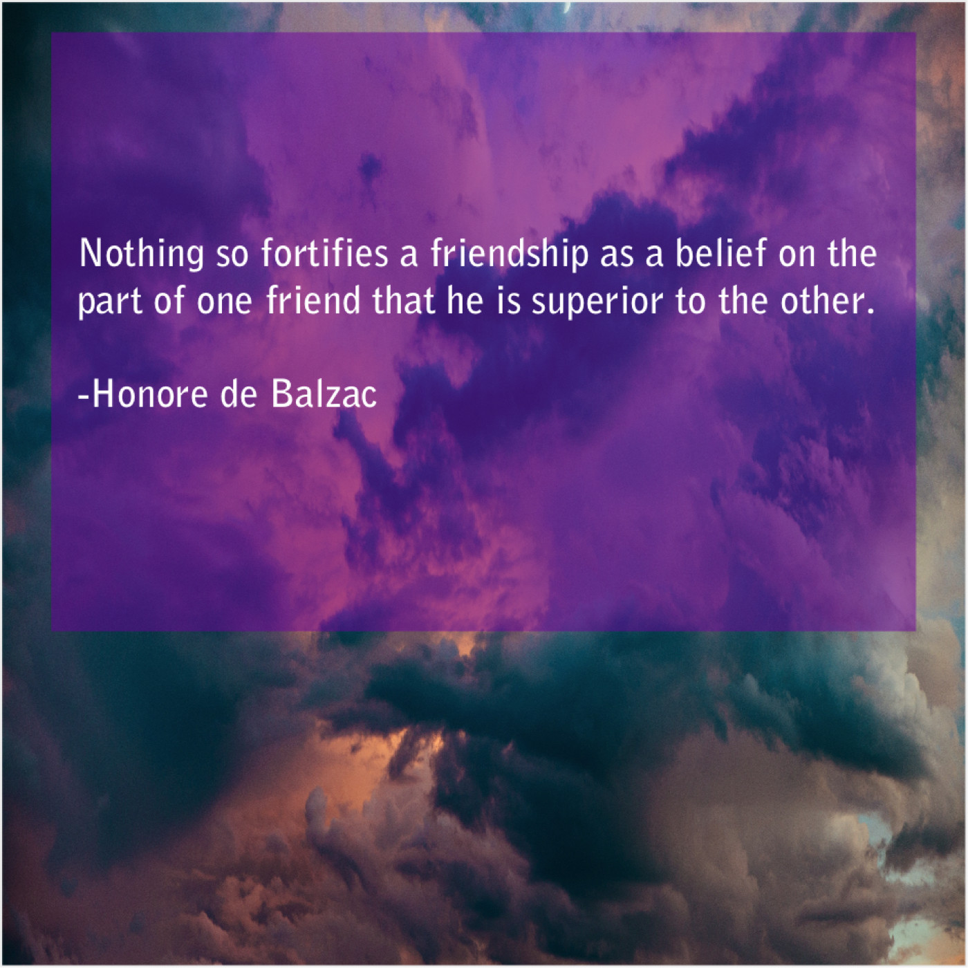 Honore de Balzac Honore de Balzac – Nothing so fortifies a friendship… June 21, 2019 admin “Nothing so fortifies a friendship as a belief on the part of one friend that he is superior to the other.”-Honore de Balzac