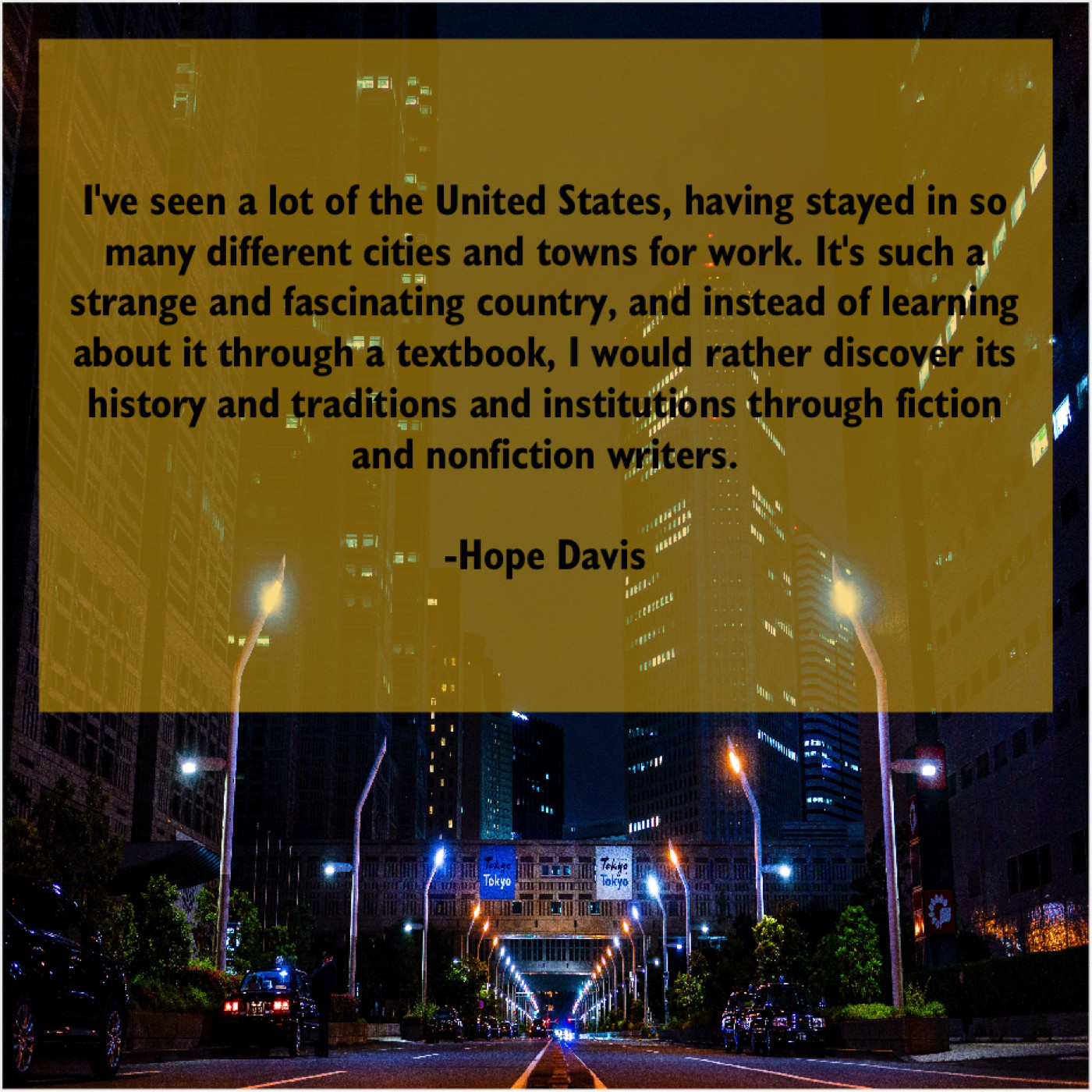 “I’ve seen a lot of the United States, having stayed in so many different cities and towns for work. It’s such a strange and fascinating country, and instead of learning about it through a textbook, I would rather discover its history and traditions and institutions through fiction and nonfiction writers.”