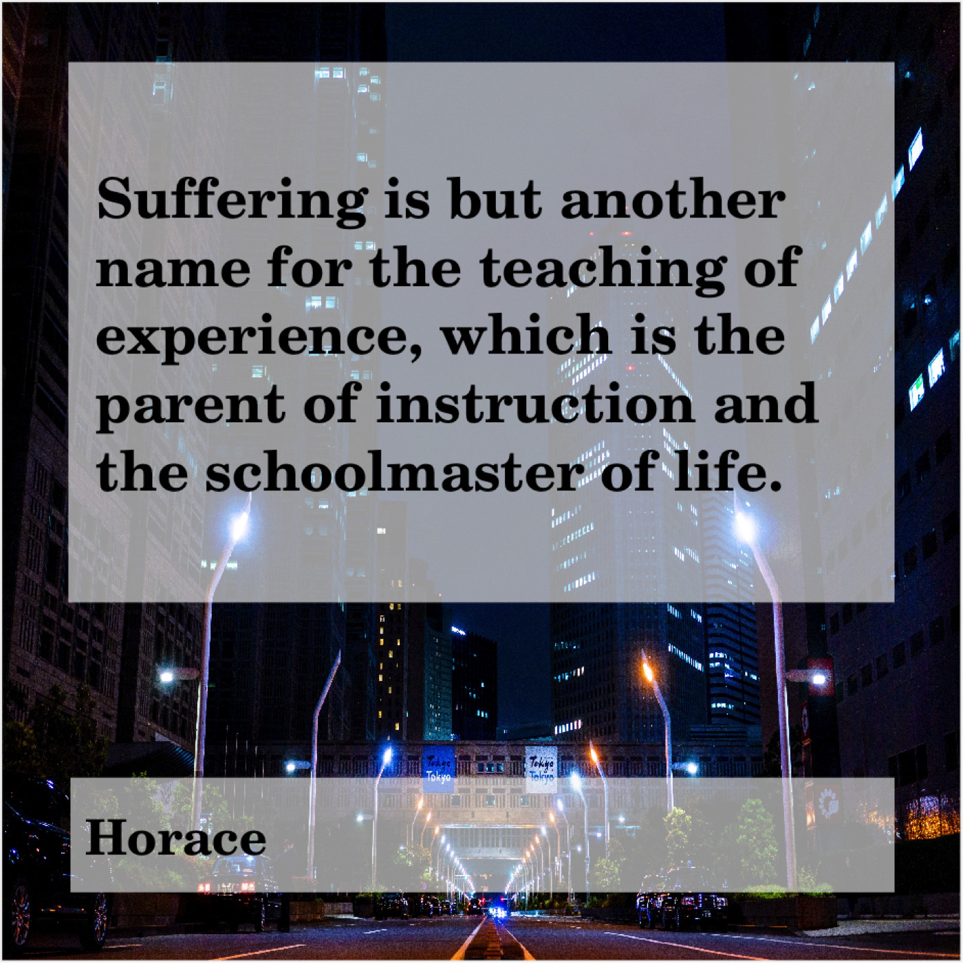 Horace Horace – Suffering is but another name… May 8, 2019 admin “Suffering is but another name for the teaching of experience, which is the parent of instruction and the schoolmaster of life.”-Horace