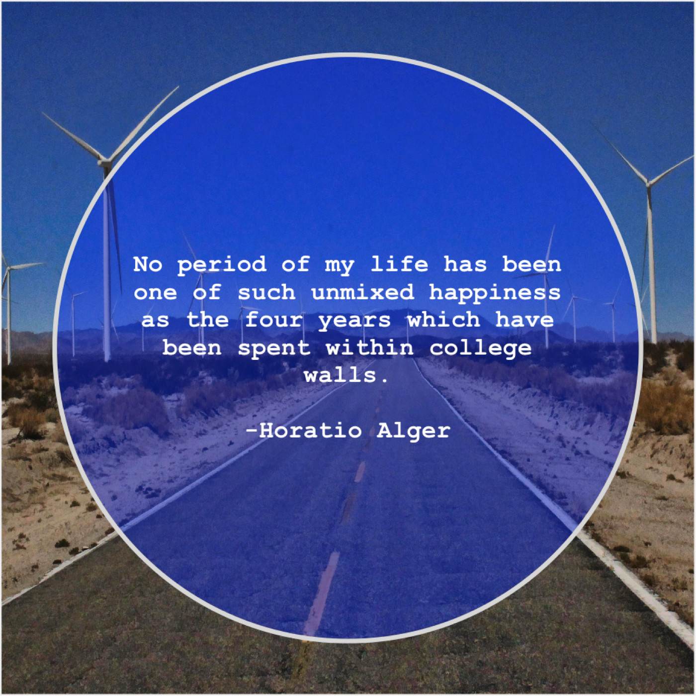 Horatio Alger Horatio Alger – No period of my life… October 22, 2019 admin “No period of my life has been one of such unmixed happiness as the four years which have been spent within college walls.”-Horatio Alger