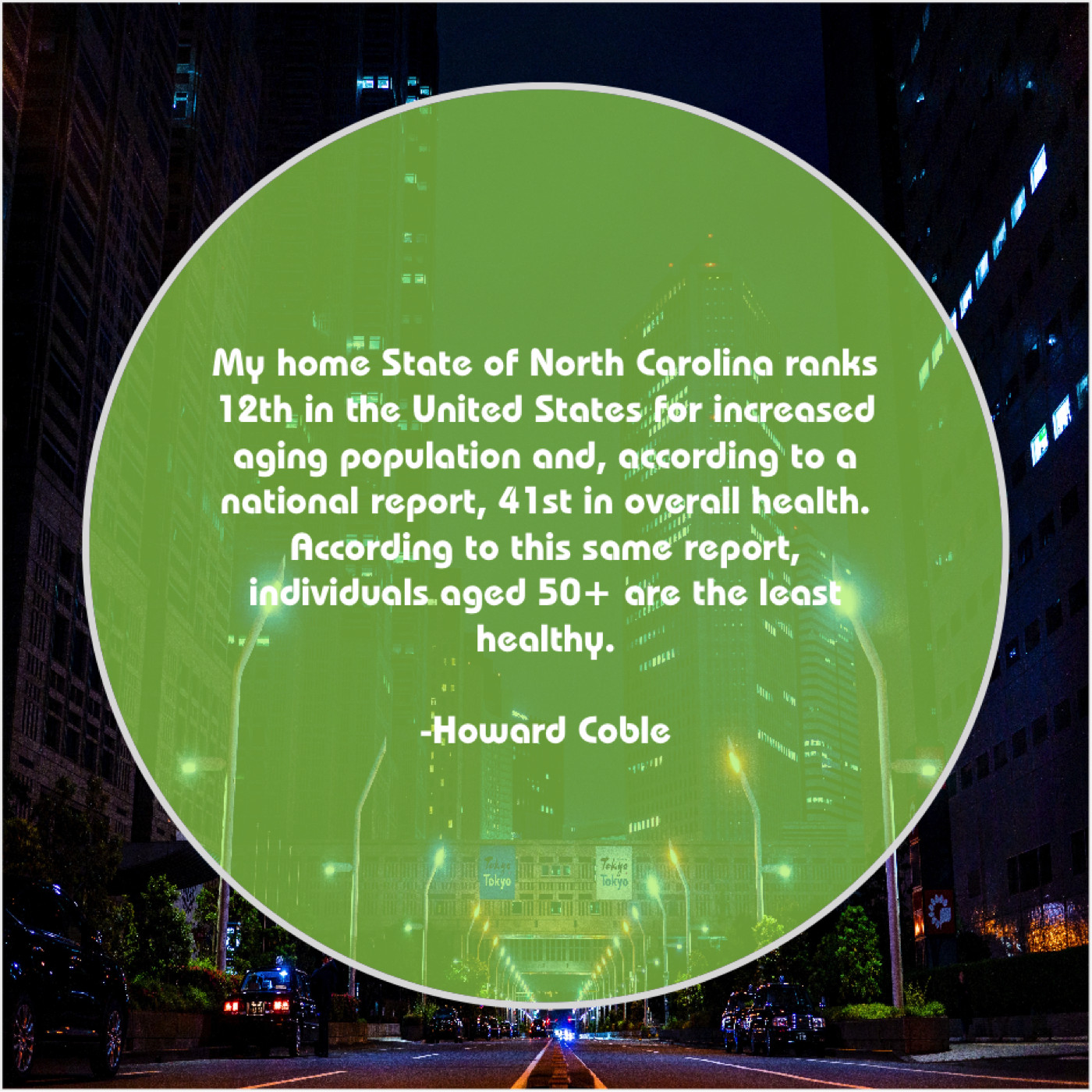 Howard Coble Howard Coble – My home State of North… August 23, 2019 admin “My home State of North Carolina ranks 12th in the United States for increased aging population and, according to a national report, 41st in overall health. According to this same report, individuals aged 50+ are the least healthy.”-Howard Coble
