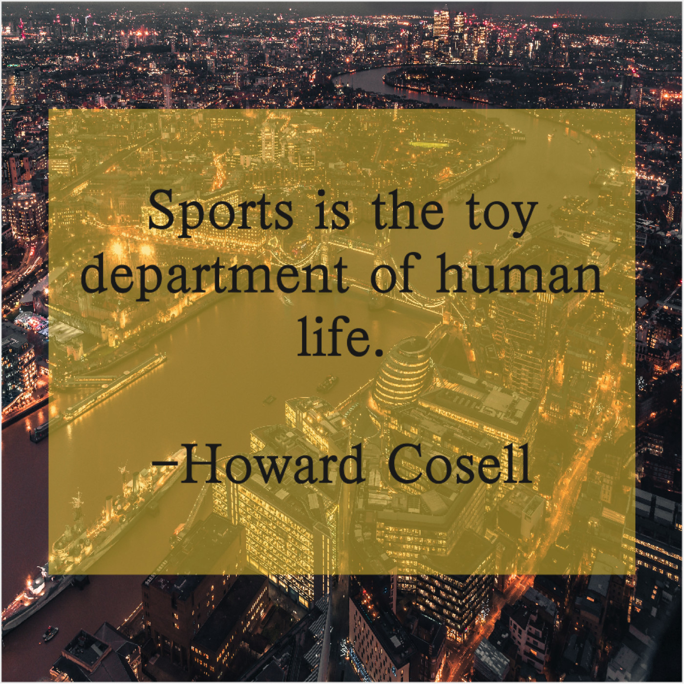 Howard Cosell Howard Cosell – Sports is the toy department… June 22, 2019 admin “Sports is the toy department of human life.”-Howard Cosell