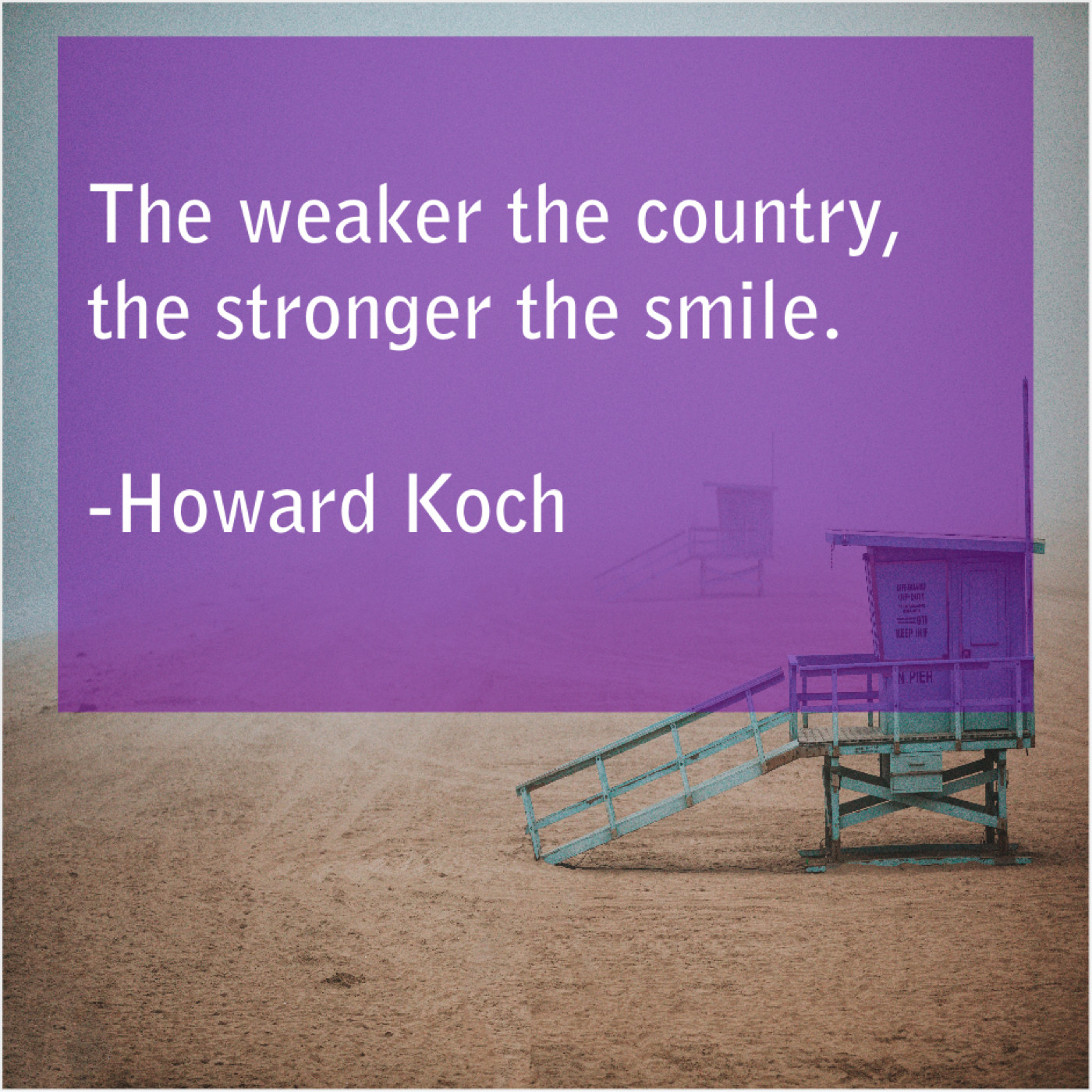 Howard Koch Howard Koch – The weaker the country, the… May 26, 2019 admin “The weaker the country, the stronger the smile.”-Howard Koch