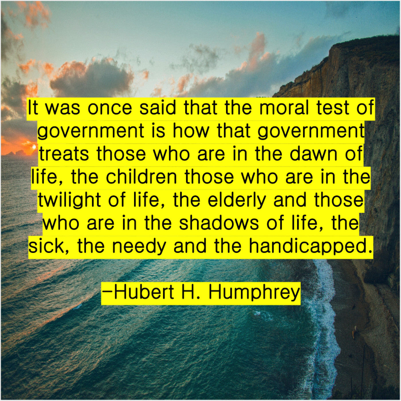 “It was once said that the moral test of government is how that government treats those who are in the dawn of life, the children those who are in the twilight of life, the elderly and those who are in the shadows of life, the sick, the needy and the handicapped.”