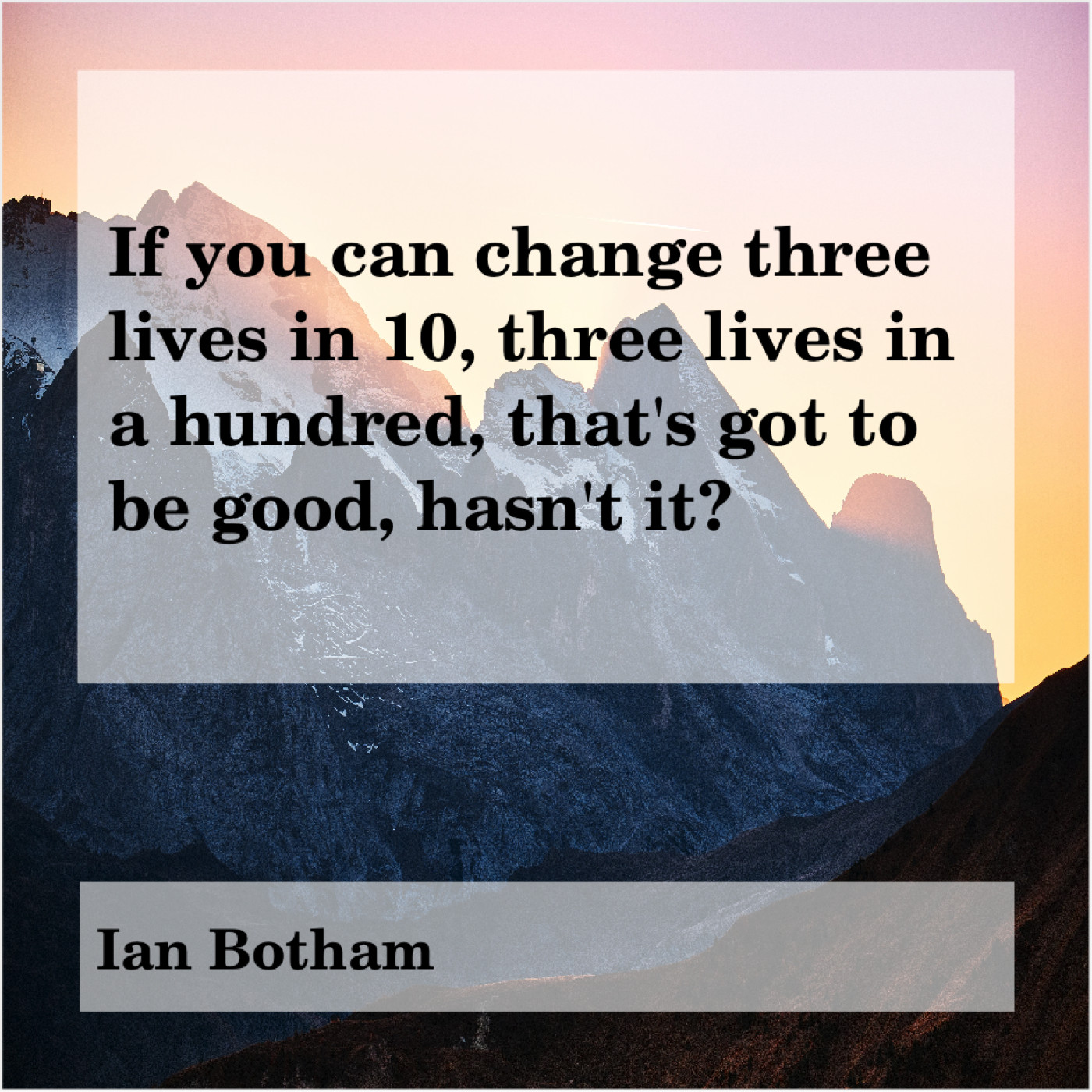 Ian Botham Ian Botham – If you can change three… September 15, 2019 admin “If you can change three lives in 10, three lives in a hundred, that’s got to be good, hasn’t it?”-Ian Botham