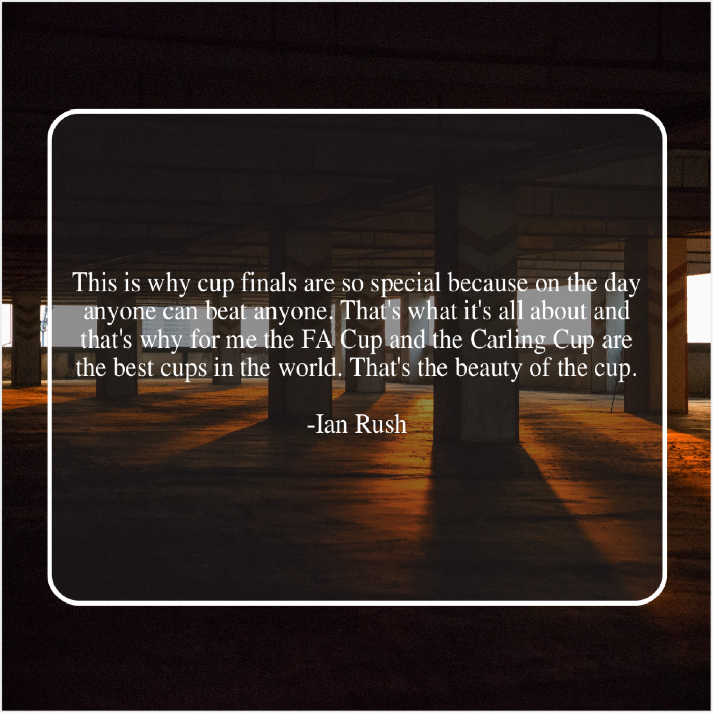 Ian Rush Ian Rush – This is why cup finals… August 12, 2019 admin “This is why cup finals are so special because on the day anyone can beat anyone. That’s what it’s all about and that’s why for me the FA Cup and the Carling Cup are the best cups in the world. That’s the beauty of the cup.”-Ian Rush