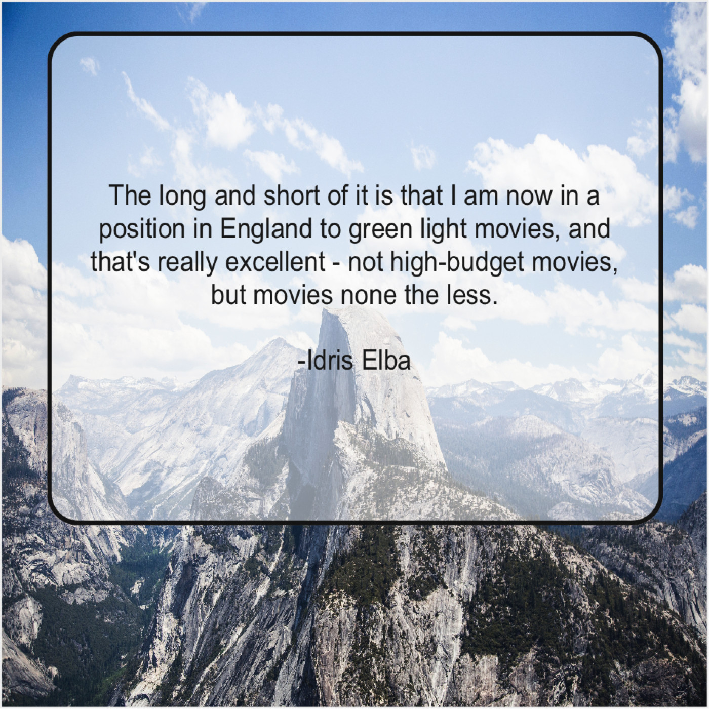 Idris Elba Idris Elba – The long and short of… August 21, 2019 admin “The long and short of it is that I am now in a position in England to green light movies, and that’s really excellent – not high-budget movies, but movies none the less.”-Idris Elba