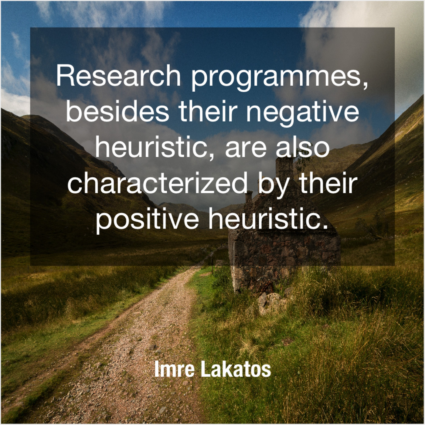 Imre Lakatos Imre Lakatos – Research programmes, besides their negative… April 9, 2019 admin “Research programmes, besides their negative heuristic, are also characterized by their positive heuristic.”-Imre Lakatos