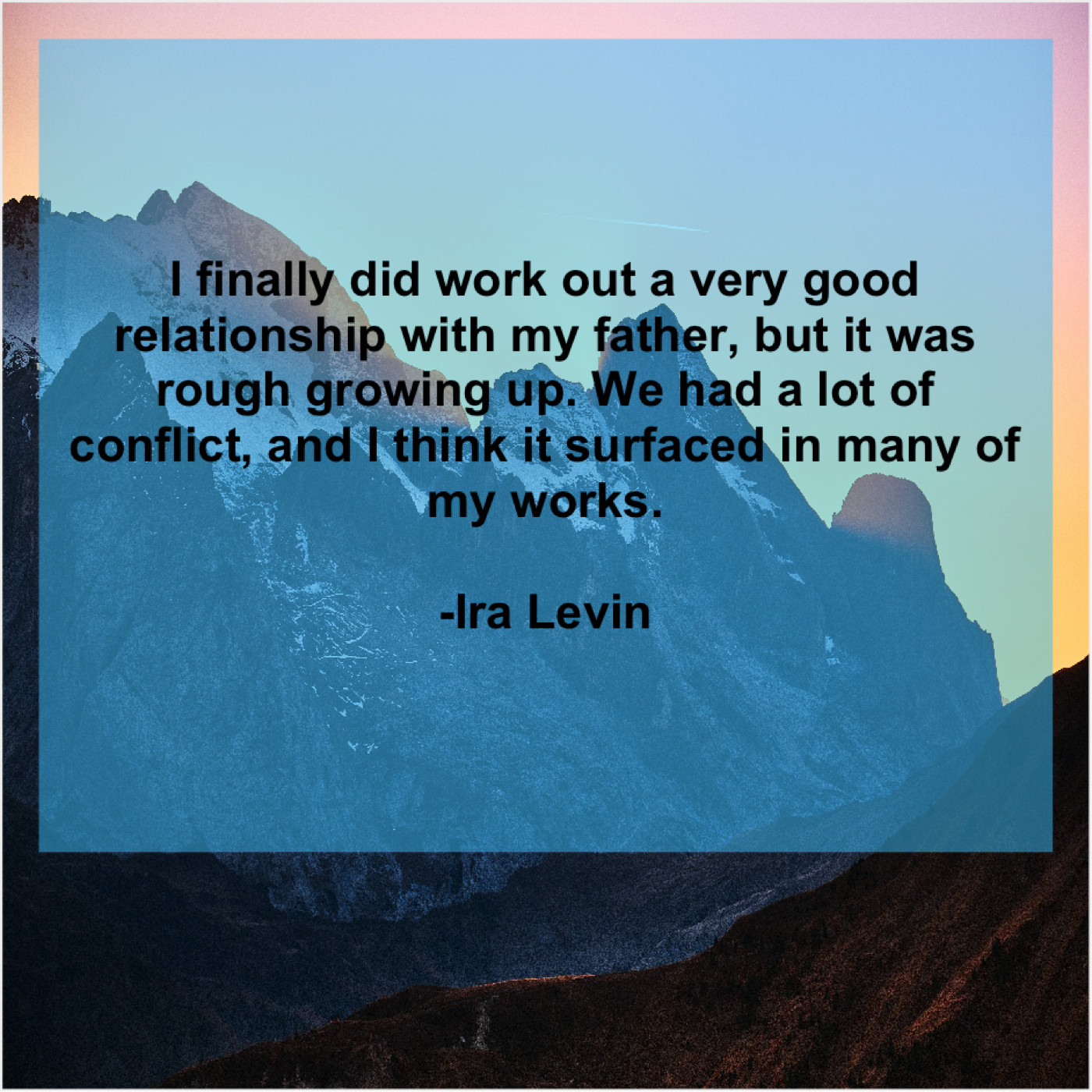 Ira Levin Ira Levin – I finally did work out… May 12, 2019 admin “I finally did work out a very good relationship with my father, but it was rough growing up. We had a lot of conflict, and I think it surfaced in many of my works.”-Ira Levin