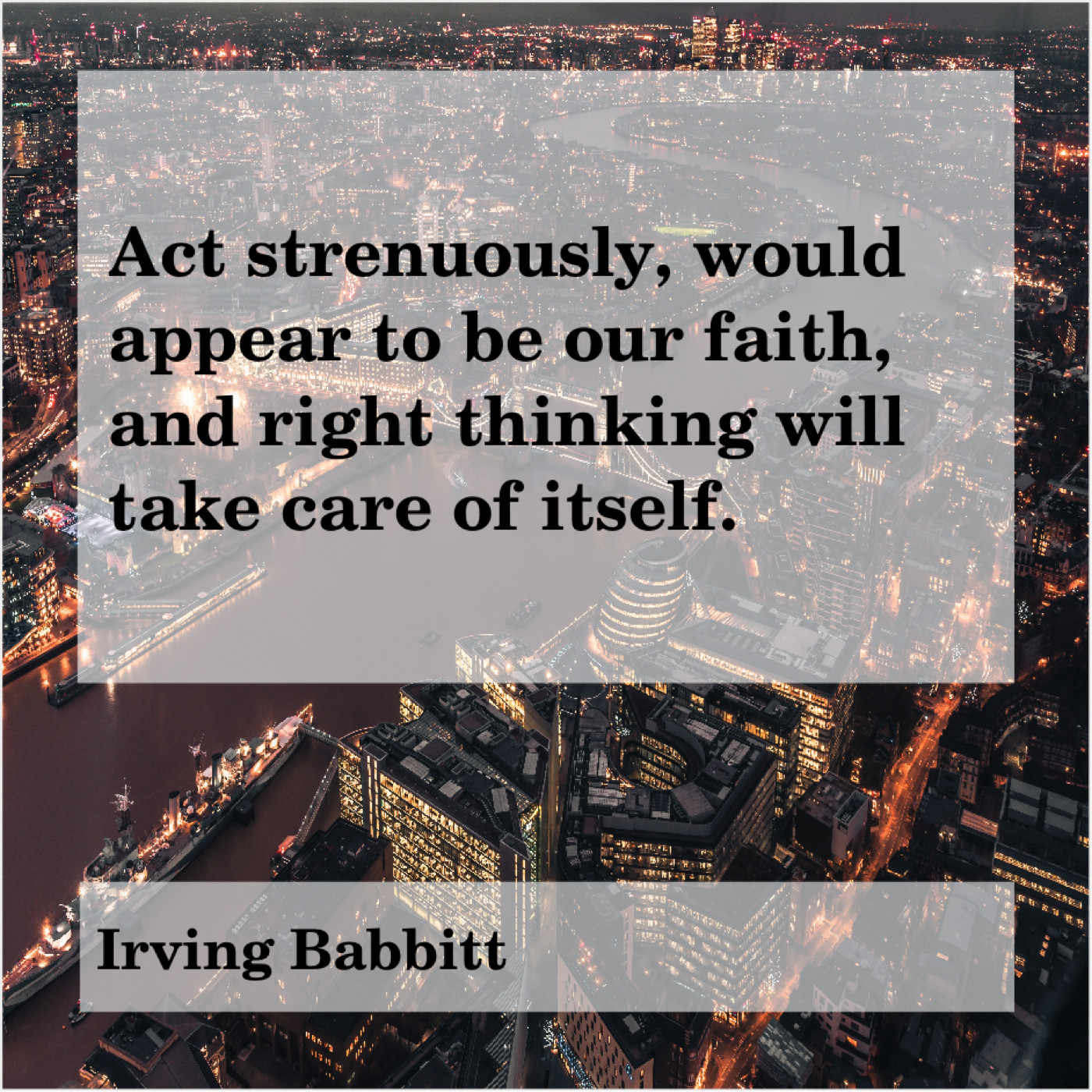 Irving Babbitt Irving Babbitt – Act strenuously, would appear to… June 3, 2019 admin “Act strenuously, would appear to be our faith, and right thinking will take care of itself.”-Irving Babbitt