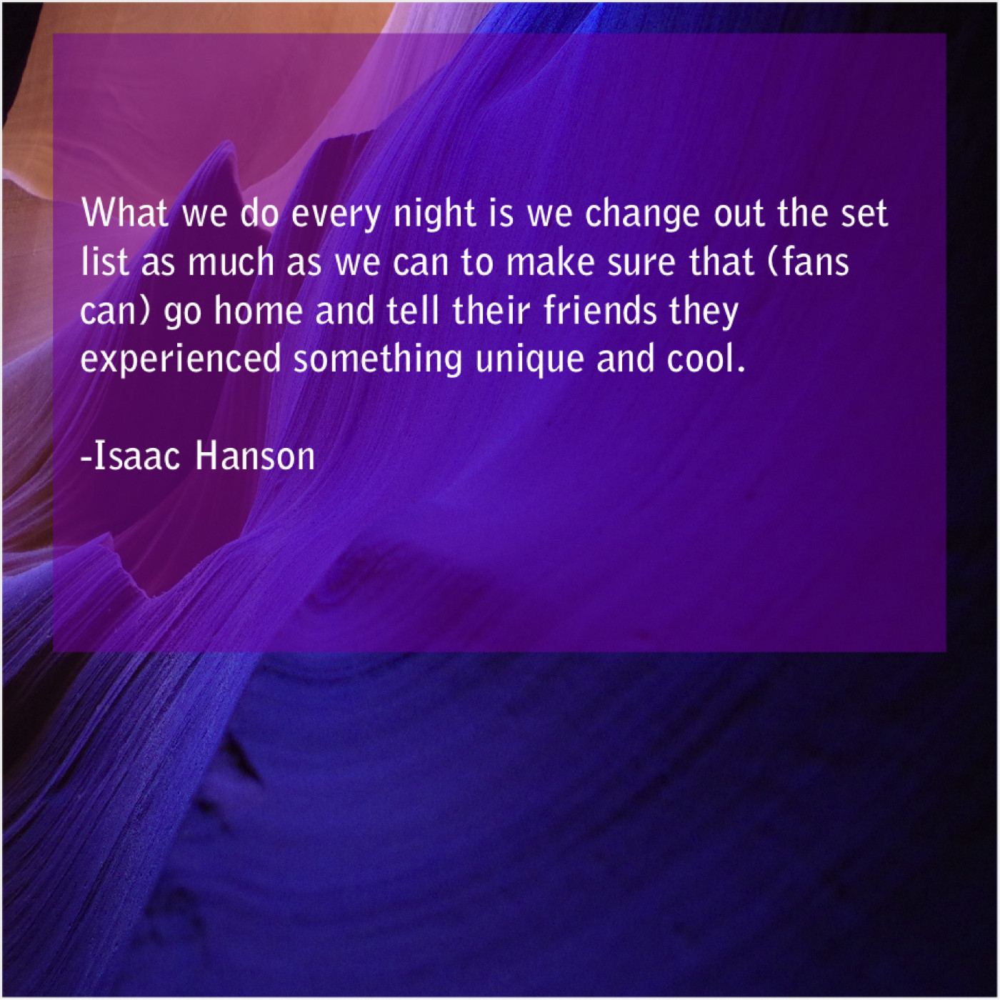 Isaac Hanson Isaac Hanson – What we do every night… May 15, 2019 admin “What we do every night is we change out the set list as much as we can to make sure that (fans can) go home and tell their friends they experienced something unique and cool.”-Isaac Hanson