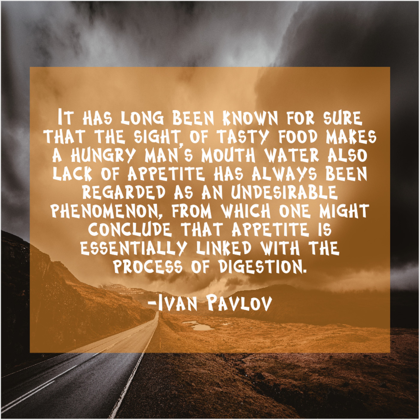 “It has long been known for sure that the sight of tasty food makes a hungry man’s mouth water also lack of appetite has always been regarded as an undesirable phenomenon, from which one might conclude that appetite is essentially linked with the process of digestion.”