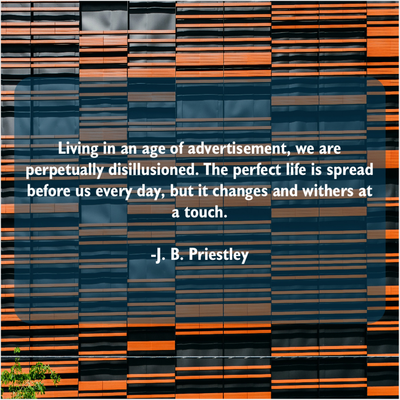 J. B. Priestley J. B. Priestley – Living in an age of… February 7, 2019 admin “Living in an age of advertisement, we are perpetually disillusioned. The perfect life is spread before us every day, but it changes and withers at a touch.”-J. B. Priestley