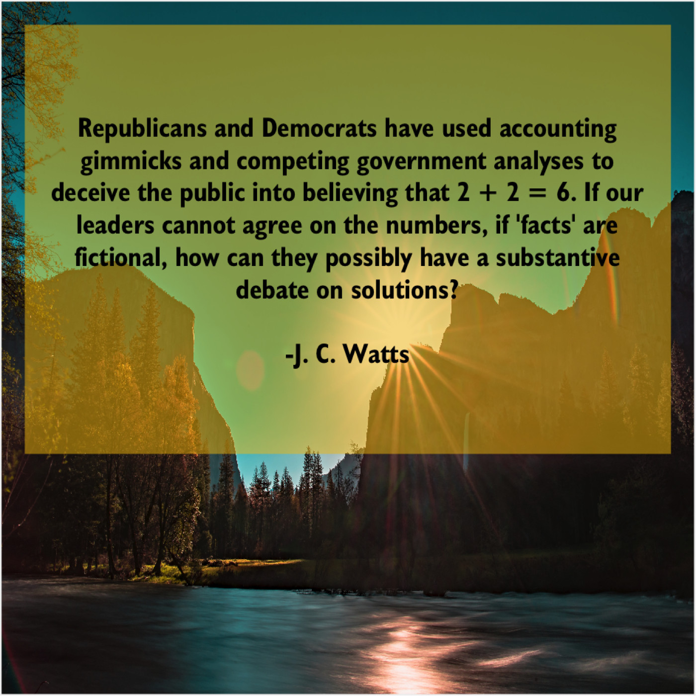 “Republicans and Democrats have used accounting gimmicks and competing government analyses to deceive the public into believing that 2 + 2 = 6. If our leaders cannot agree on the numbers, if ‘facts’ are fictional, how can they possibly have a substantive debate on solutions?”