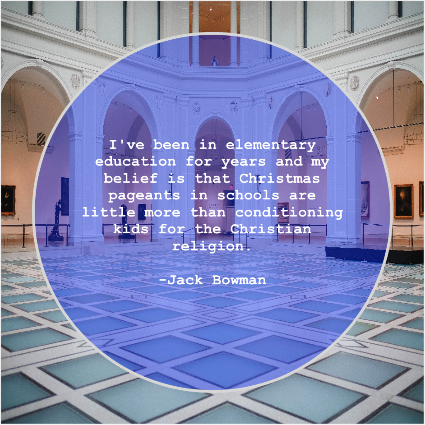 “I’ve been in elementary education for years and my belief is that Christmas pageants in schools are little more than conditioning kids for the Christian religion.”
