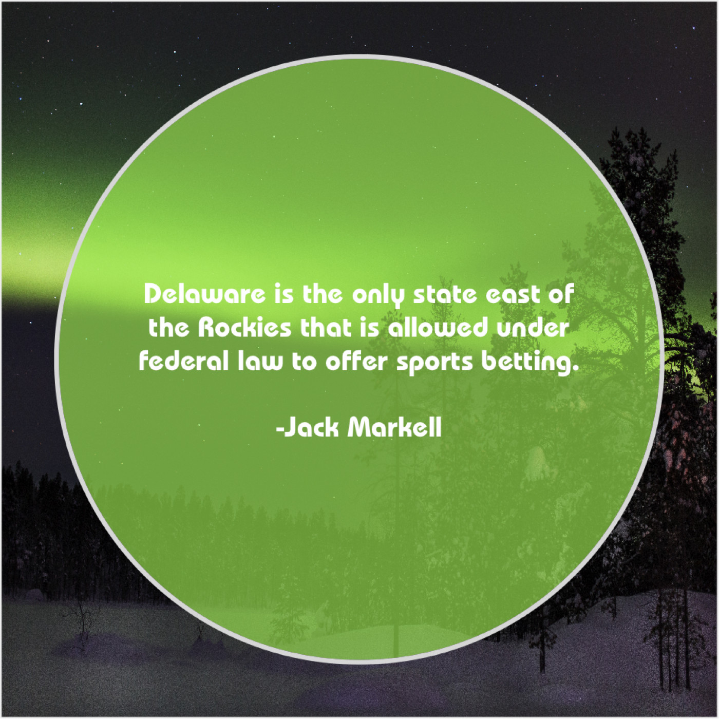 Jack Markell Jack Markell – Delaware is the only state… February 12, 2019 admin “Delaware is the only state east of the Rockies that is allowed under federal law to offer sports betting.”-Jack Markell