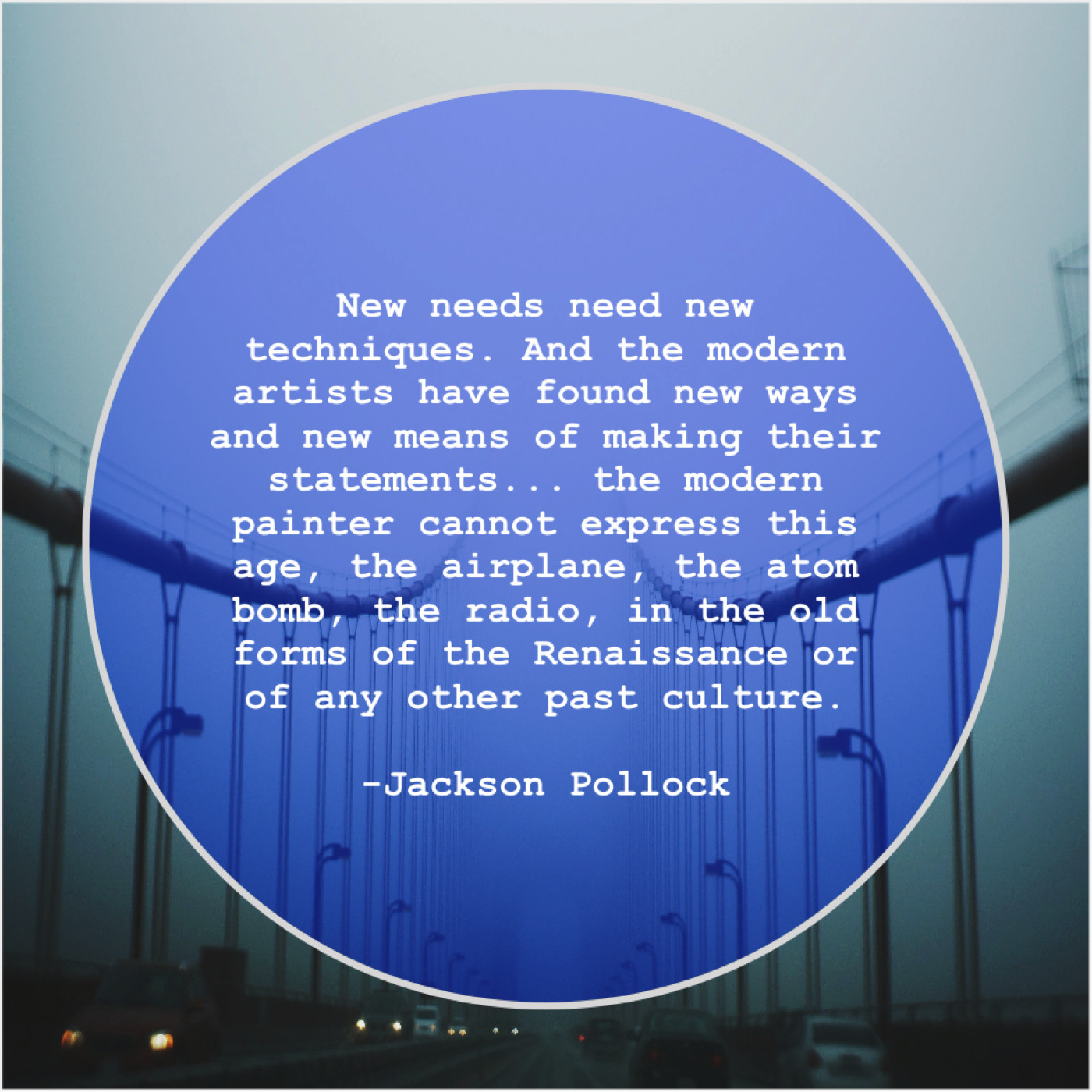 “New needs need new techniques. And the modern artists have found new ways and new means of making their statements… the modern painter cannot express this age, the airplane, the atom bomb, the radio, in the old forms of the Renaissance or of any other past culture.”