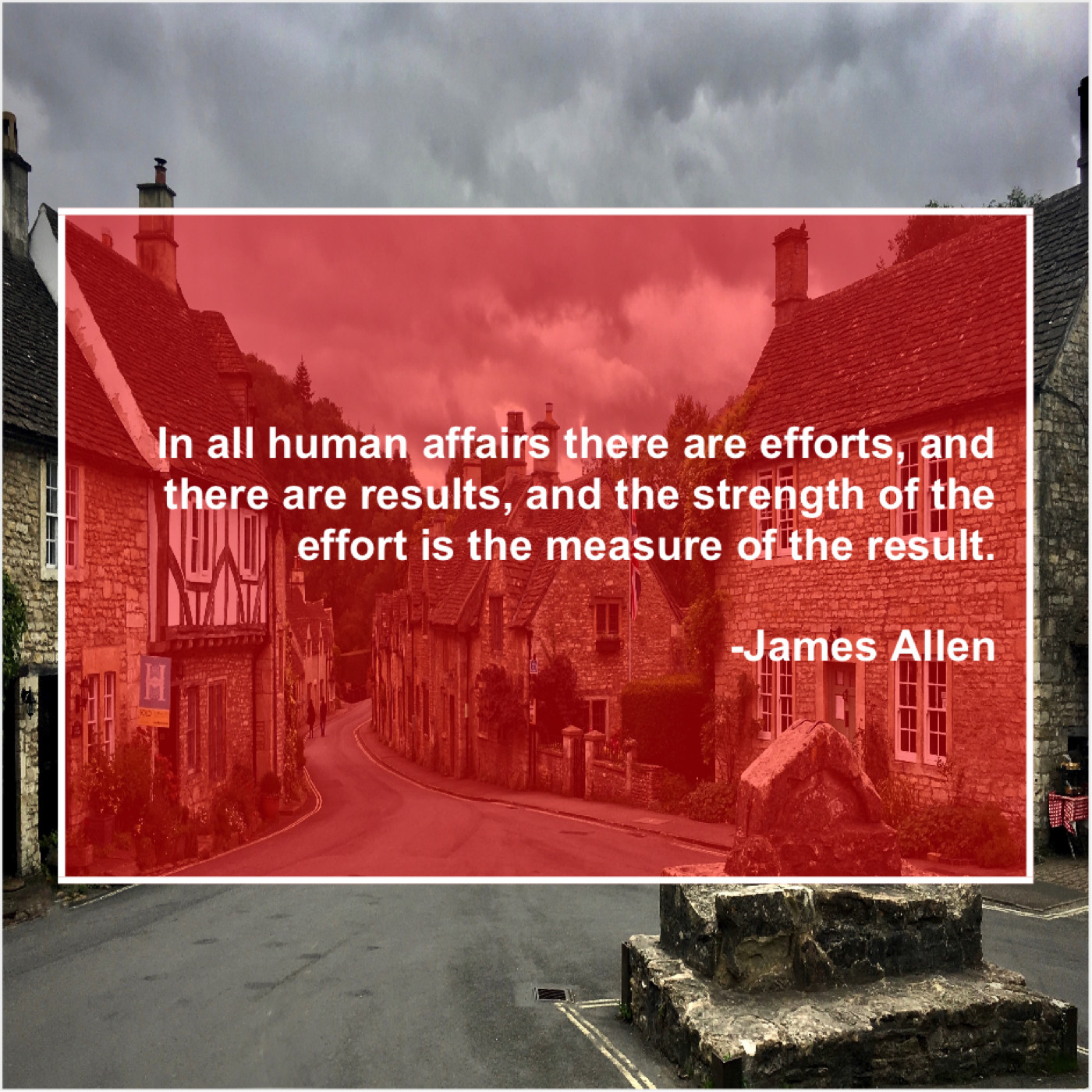 James Allen James Allen – In all human affairs there… September 24, 2019 admin “In all human affairs there are efforts, and there are results, and the strength of the effort is the measure of the result.”-James Allen