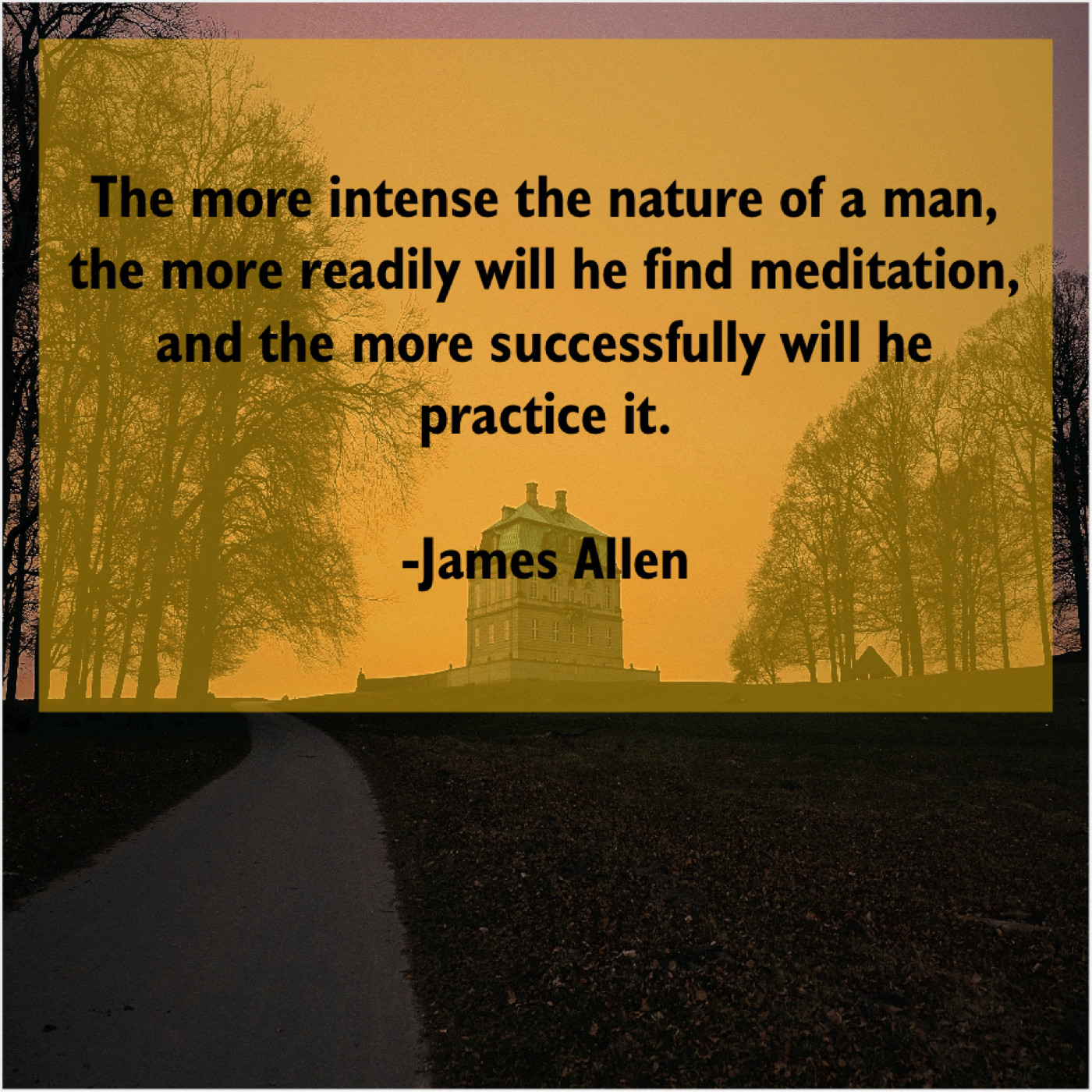 James Allen James Allen – The more intense the nature… September 18, 2019 admin “The more intense the nature of a man, the more readily will he find meditation, and the more successfully will he practice it.”-James Allen