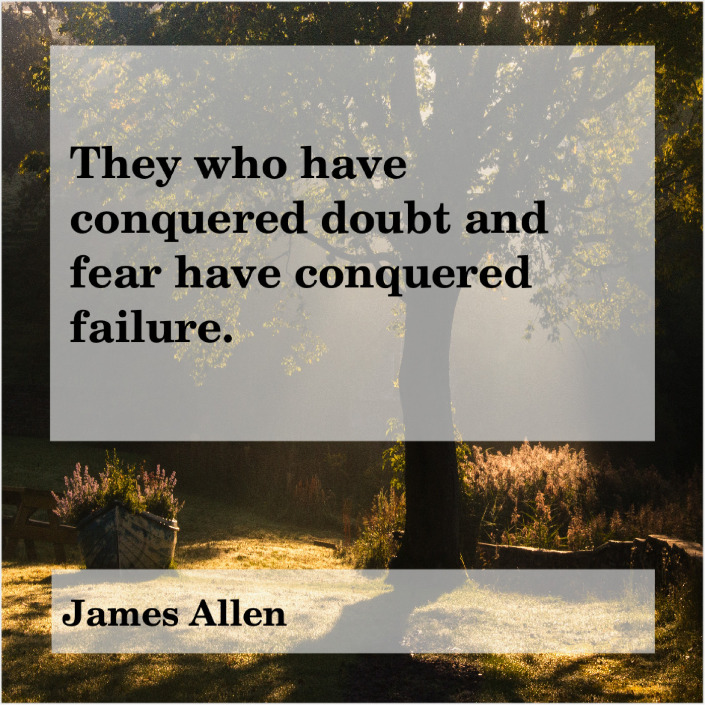 James Allen James Allen – They who have conquered doubt… May 25, 2019 admin “They who have conquered doubt and fear have conquered failure.”-James Allen