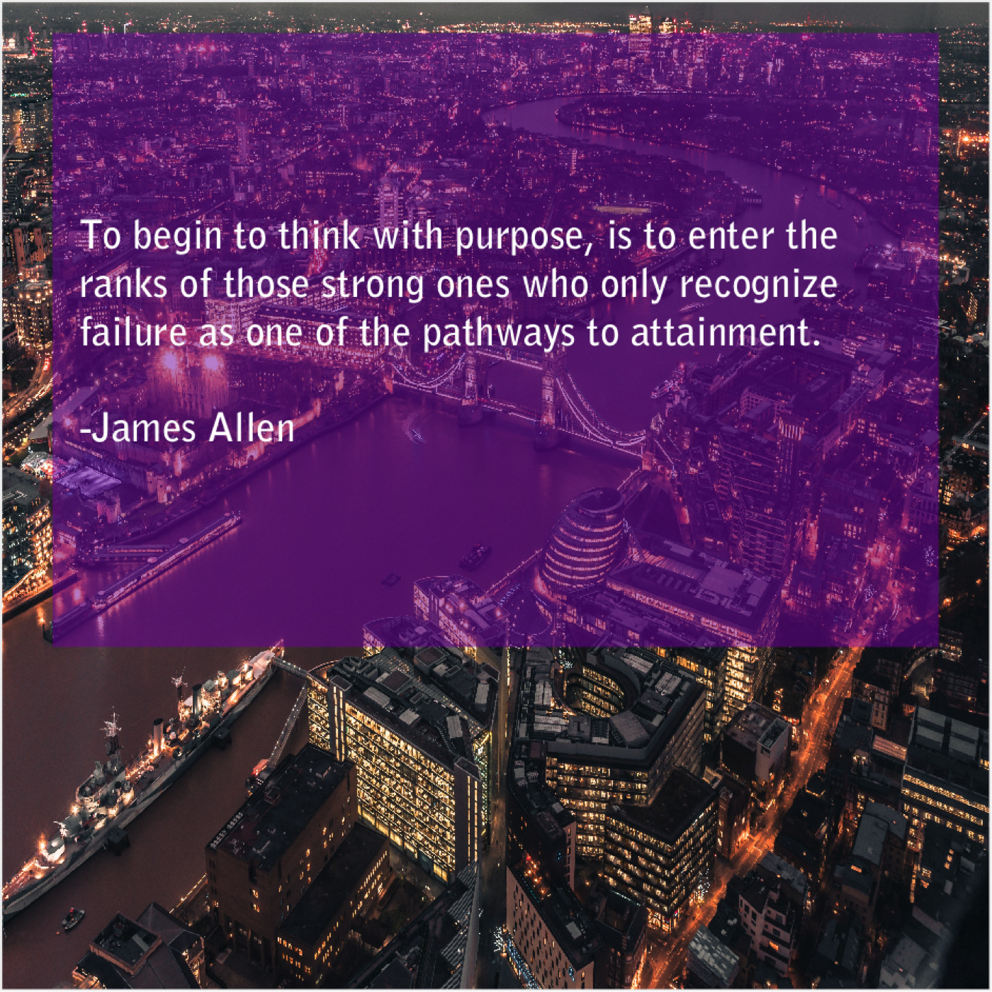 James Allen James Allen – To begin to think with… May 25, 2019 admin “To begin to think with purpose, is to enter the ranks of those strong ones who only recognize failure as one of the pathways to attainment.”-James Allen