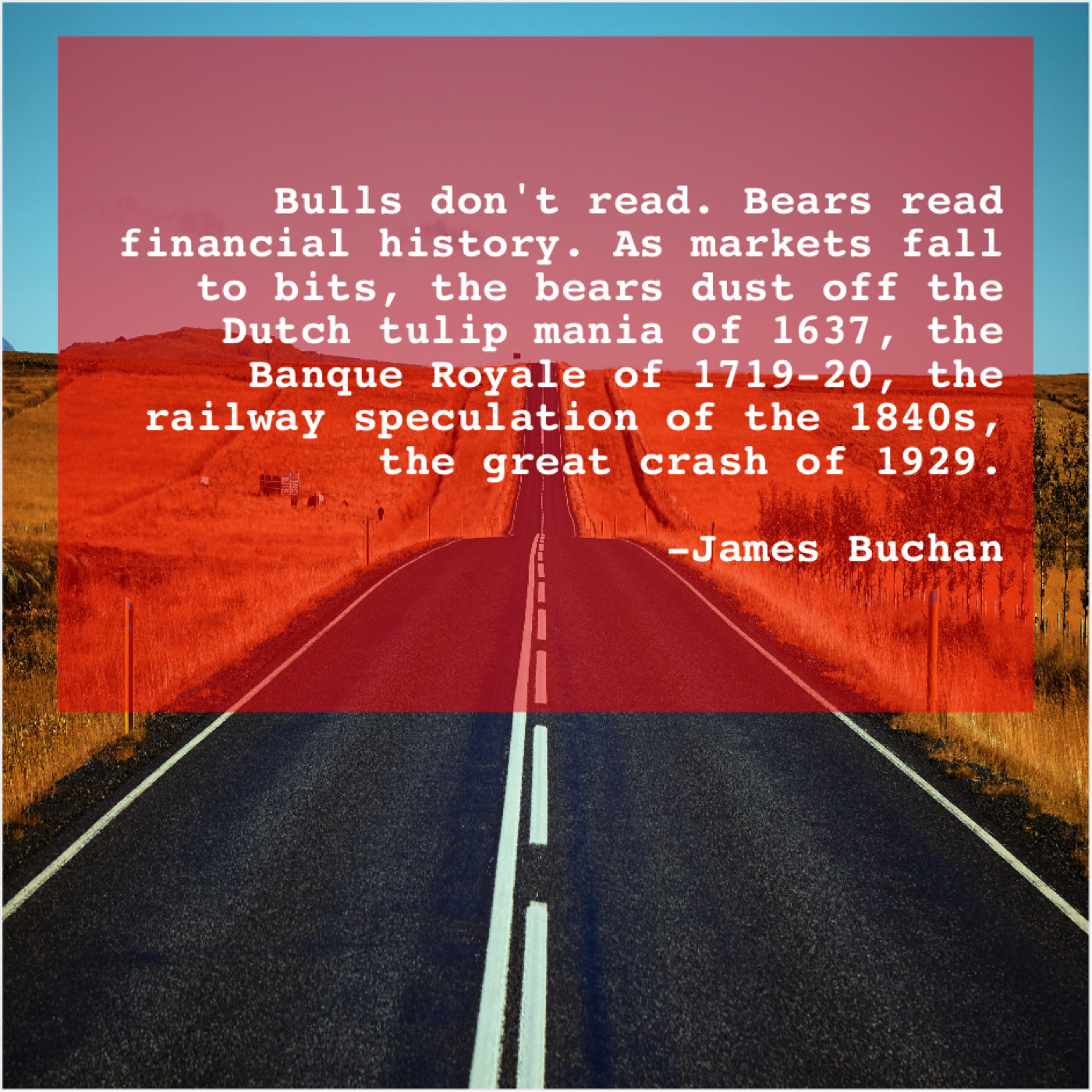 James Buchan James Buchan – Bulls don’t read. Bears read… May 15, 2019 admin “Bulls don’t read. Bears read financial history. As markets fall to bits, the bears dust off the Dutch tulip mania of 1637, the Banque Royale of 1719-20, the railway speculation of the 1840s, the great crash of 1929.”-James Buchan