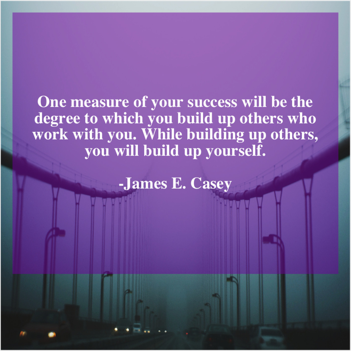 James E. Casey James E. Casey – One measure of your success… September 23, 2019 admin “One measure of your success will be the degree to which you build up others who work with you. While building up others, you will build up yourself.”-James E. Casey