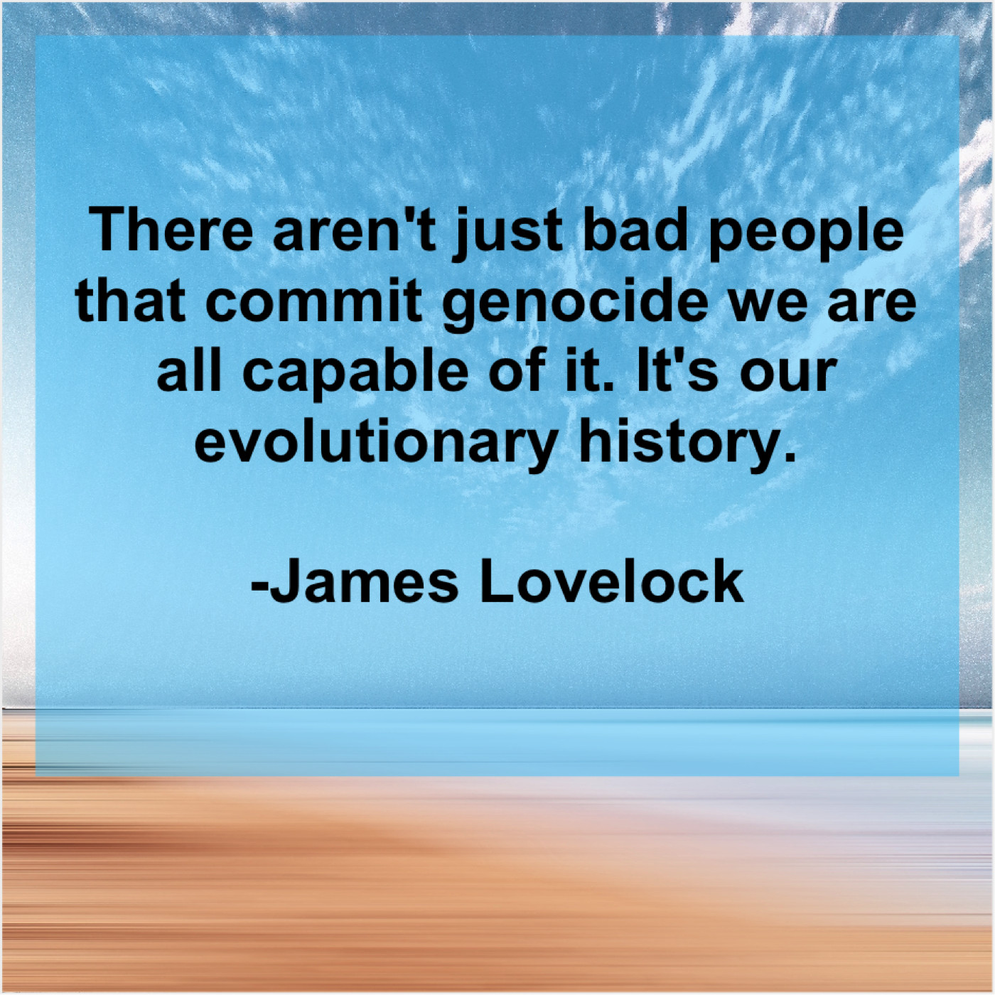 James Lovelock James Lovelock – There aren’t just bad people… November 19, 2018 admin “There aren’t just bad people that commit genocide we are all capable of it. It’s our evolutionary history.”-James Lovelock