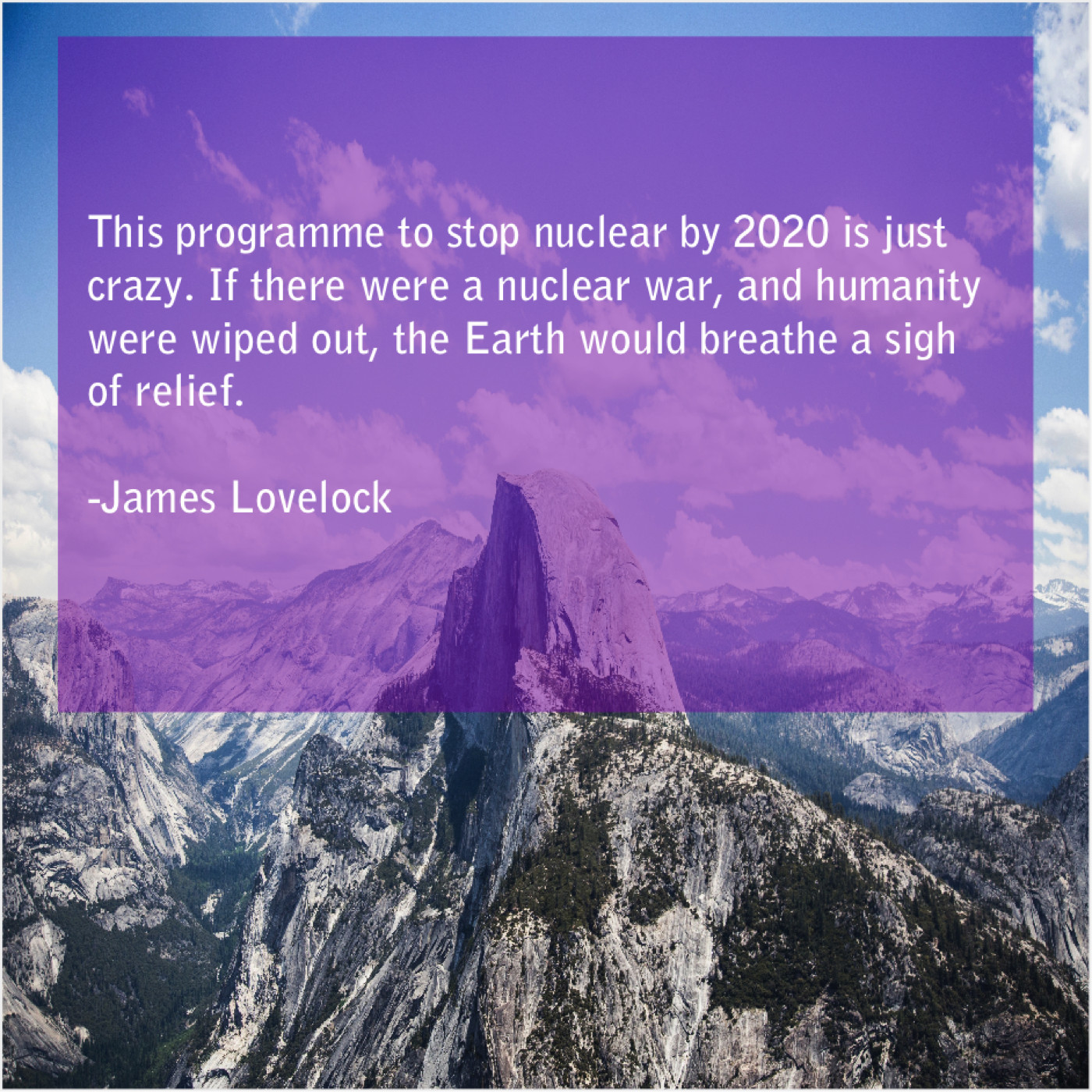 James Lovelock James Lovelock – This programme to stop nuclear… September 16, 2019 admin “This programme to stop nuclear by 2020 is just crazy. If there were a nuclear war, and humanity were wiped out, the Earth would breathe a sigh of relief.”-James Lovelock