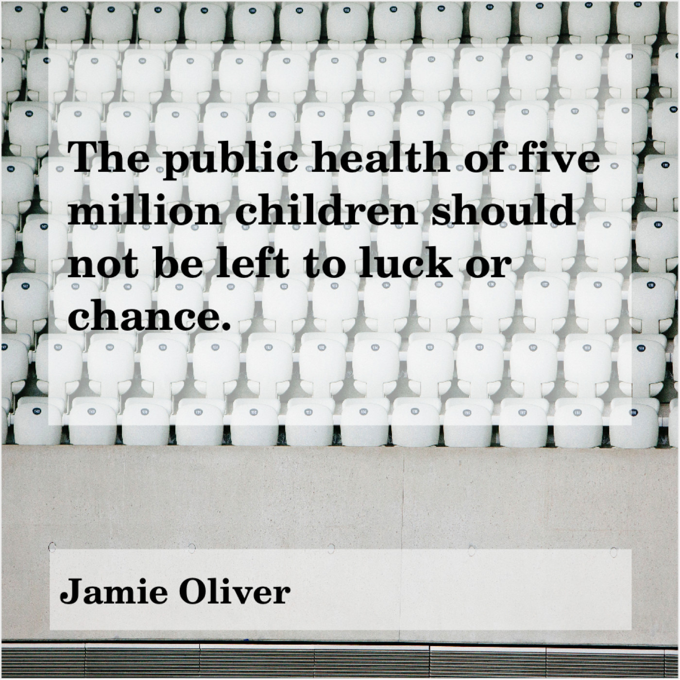 Jamie Oliver Jamie Oliver – The public health of five… January 13, 2019 admin “The public health of five million children should not be left to luck or chance.”-Jamie Oliver