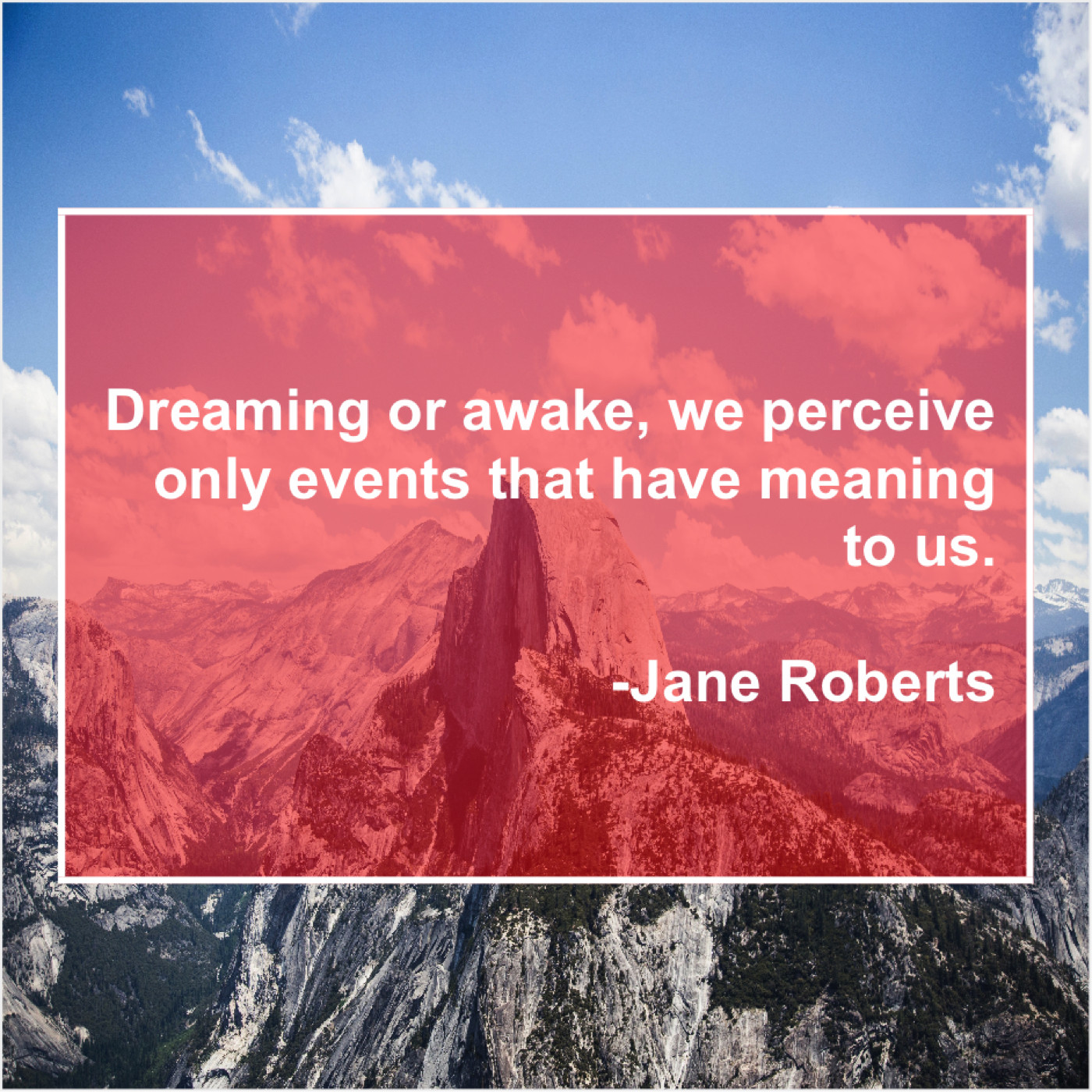 Jane Roberts Jane Roberts – Dreaming or awake, we perceive… August 4, 2019 admin “Dreaming or awake, we perceive only events that have meaning to us.”-Jane Roberts