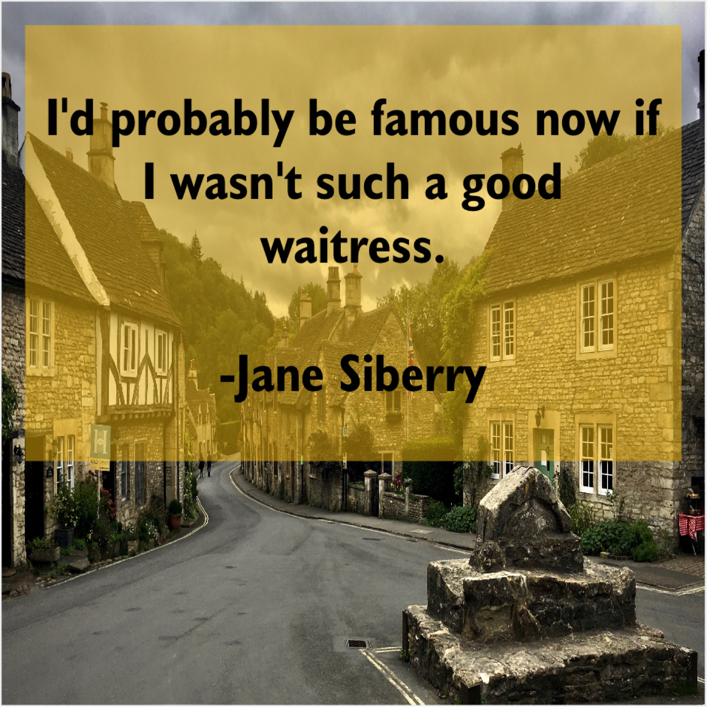Jane Siberry Jane Siberry – I’d probably be famous now… October 8, 2019 admin “I’d probably be famous now if I wasn’t such a good waitress.”-Jane Siberry