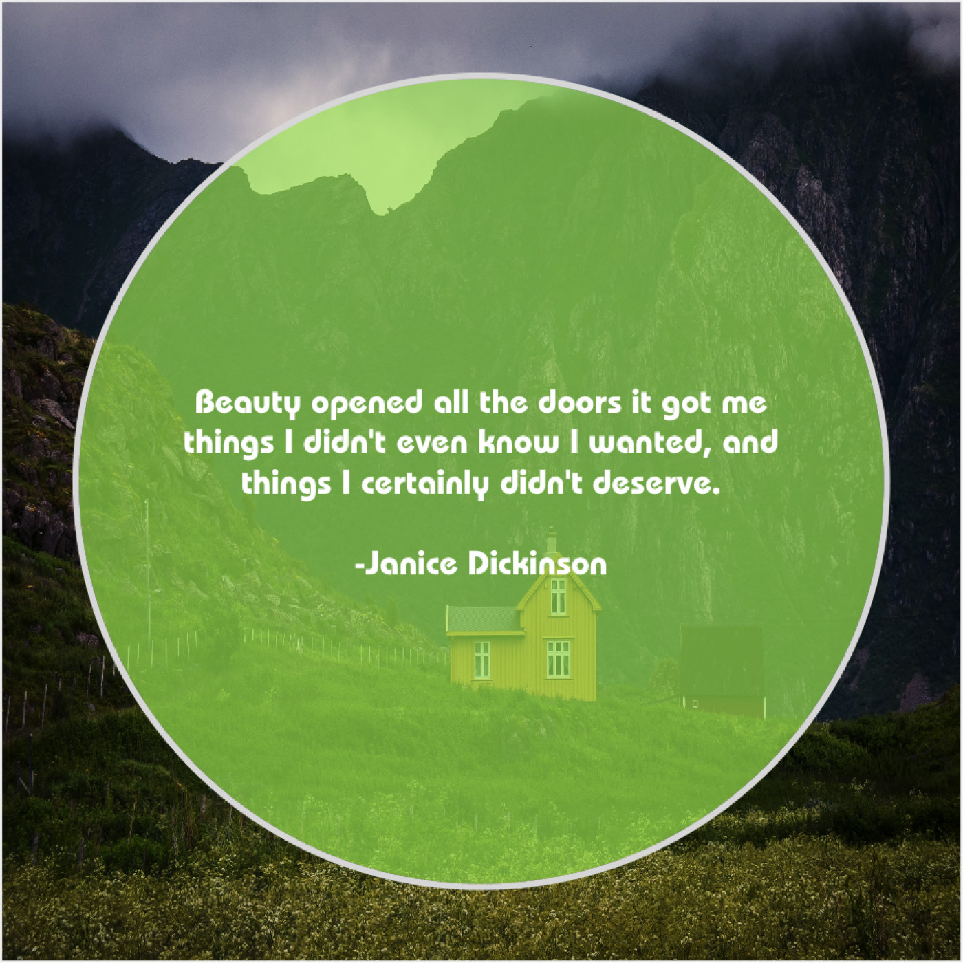 Janice Dickinson Janice Dickinson – Beauty opened all the doors… August 21, 2019 admin “Beauty opened all the doors it got me things I didn’t even know I wanted, and things I certainly didn’t deserve.”-Janice Dickinson