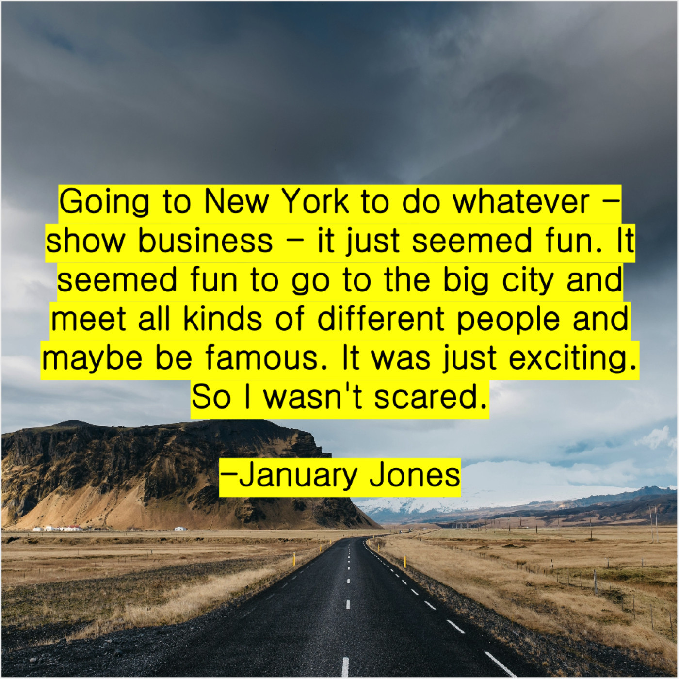 January Jones January Jones – Going to New York to… August 14, 2019 admin “Going to New York to do whatever – show business – it just seemed fun. It seemed fun to go to the big city and meet all kinds of different people and maybe be famous. It was just exciting. So I wasn’t scared.”-January Jones