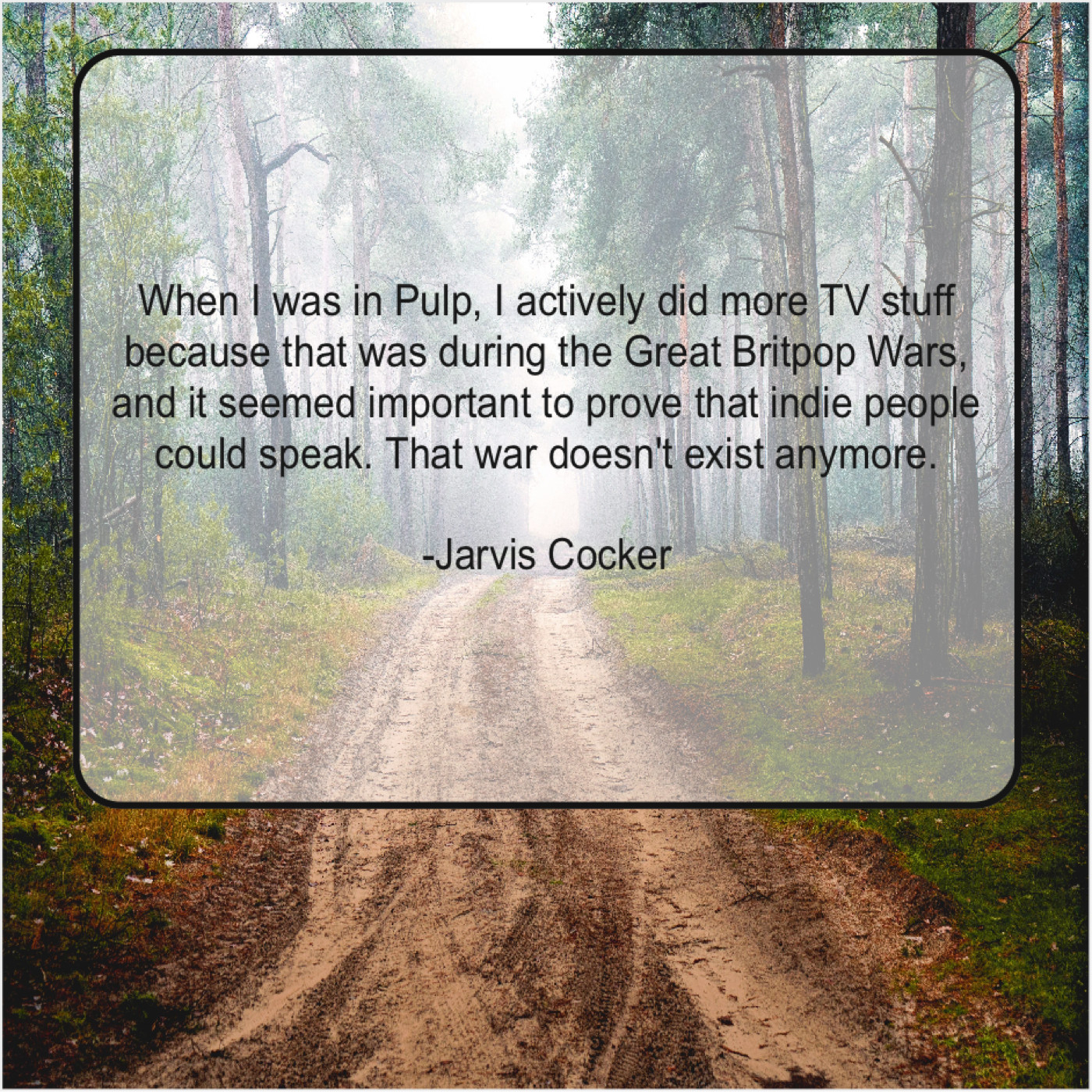 Jarvis Cocker Jarvis Cocker – When I was in Pulp… February 9, 2019 admin “When I was in Pulp, I actively did more TV stuff because that was during the Great Britpop Wars, and it seemed important to prove that indie people could speak. That war doesn’t exist anymore.”-Jarvis Cocker