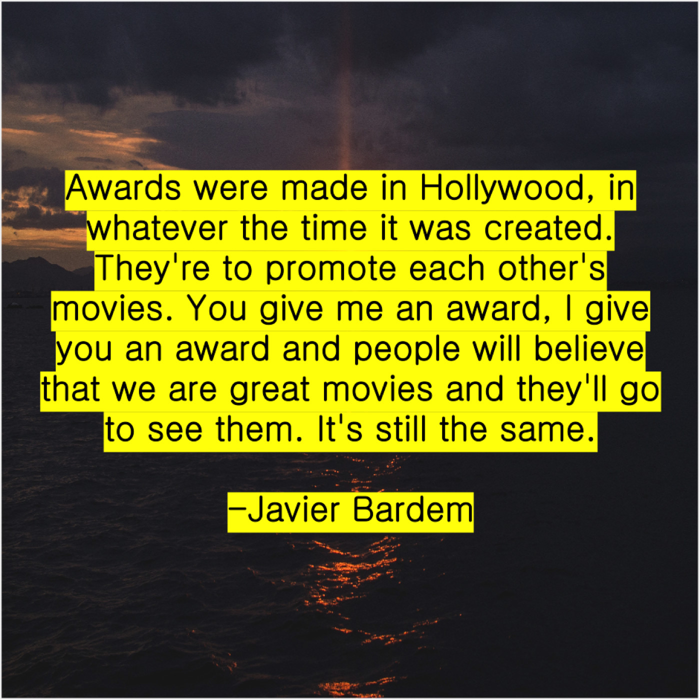 “Awards were made in Hollywood, in whatever the time it was created. They’re to promote each other’s movies. You give me an award, I give you an award and people will believe that we are great movies and they’ll go to see them. It’s still the same.”