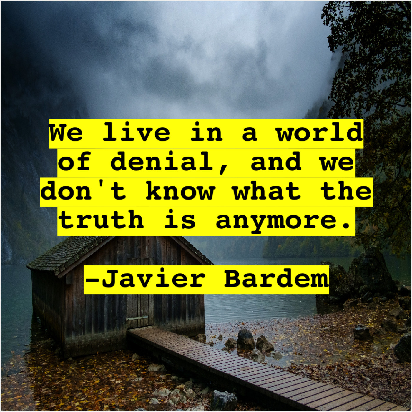 Javier Bardem Javier Bardem – We live in a world… August 1, 2019 admin “We live in a world of denial, and we don’t know what the truth is anymore.”-Javier Bardem