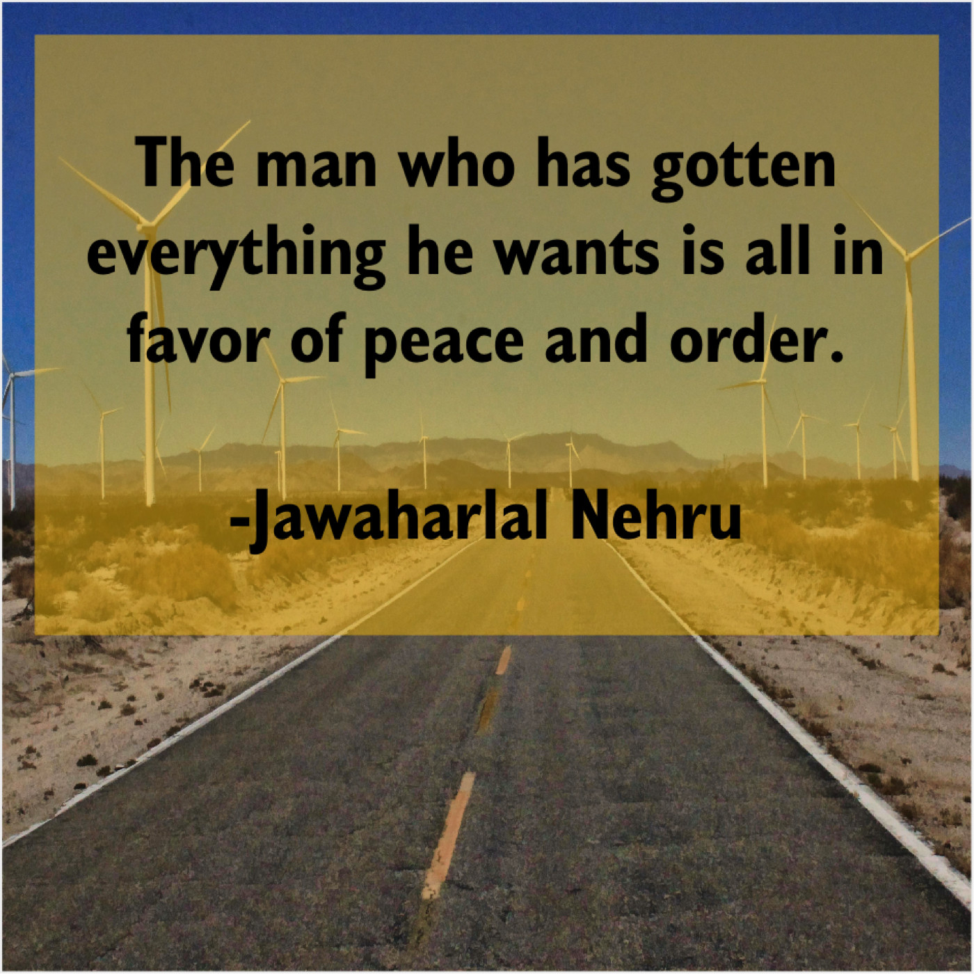 Jawaharlal Nehru Jawaharlal Nehru – The man who has gotten… October 5, 2019 admin “The man who has gotten everything he wants is all in favor of peace and order.”-Jawaharlal Nehru