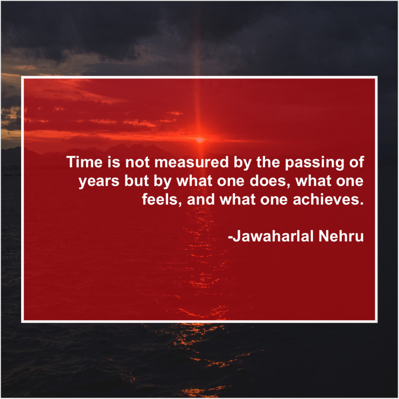 Jawaharlal Nehru Jawaharlal Nehru – Time is not measured by… February 8, 2019 admin “Time is not measured by the passing of years but by what one does, what one feels, and what one achieves.”-Jawaharlal Nehru