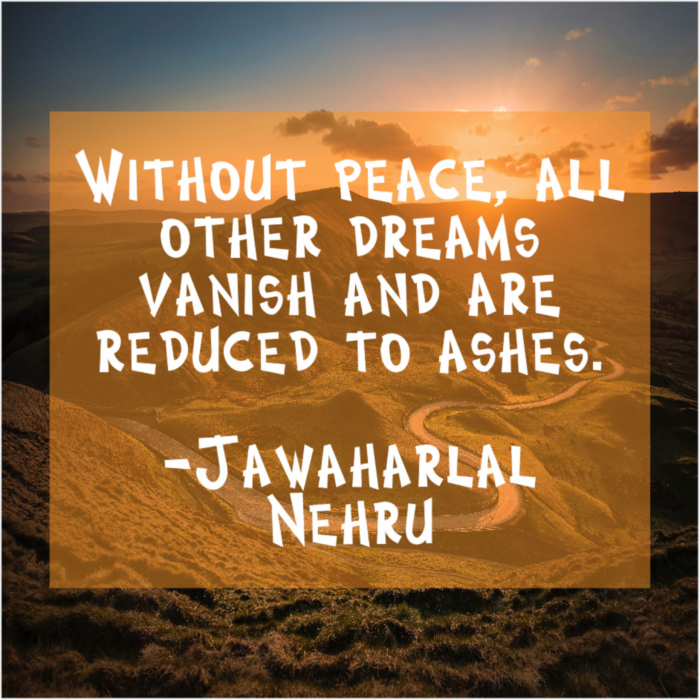 Jawaharlal Nehru Jawaharlal Nehru – Without peace, all other dreams… August 4, 2019 admin “Without peace, all other dreams vanish and are reduced to ashes.”-Jawaharlal Nehru