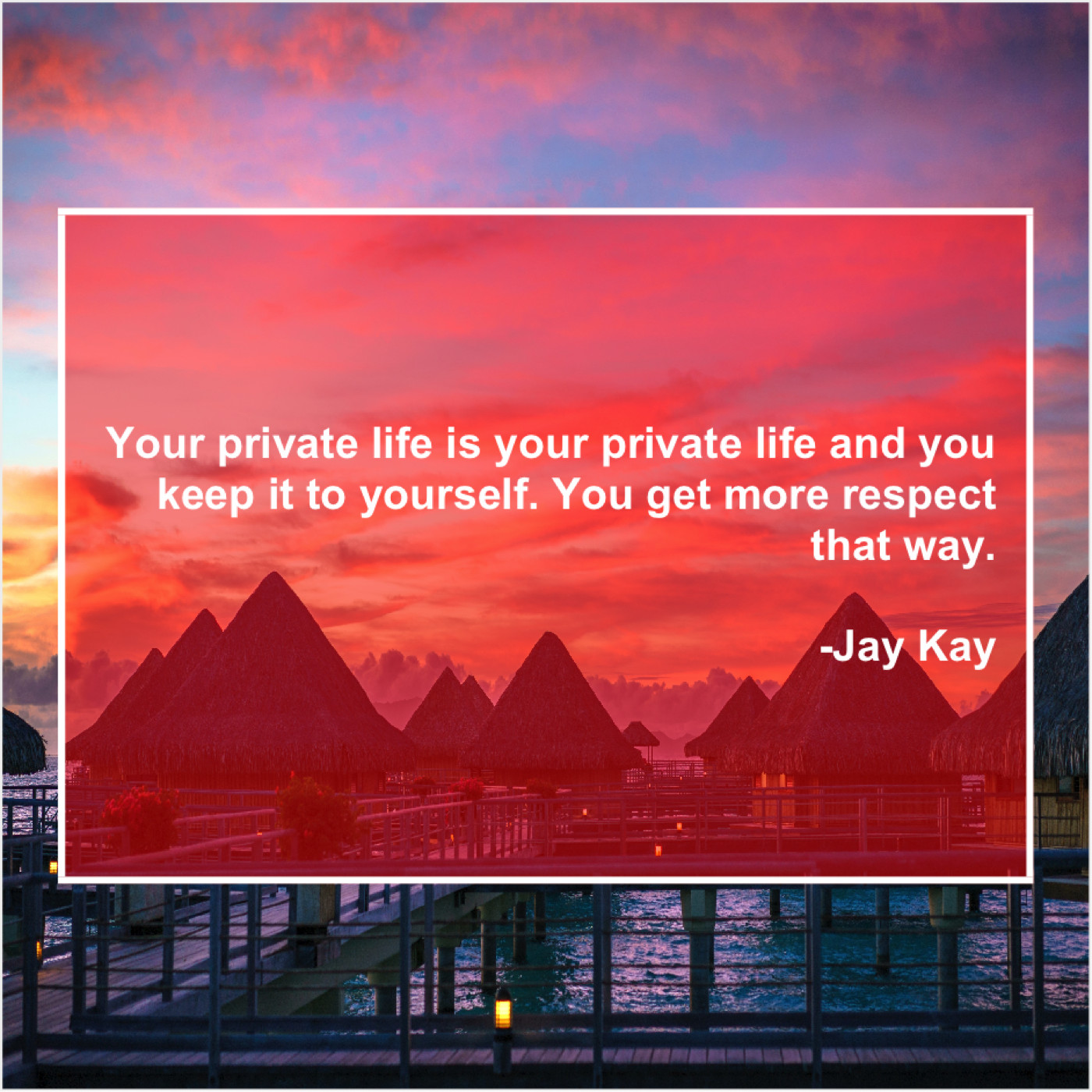 Jay Kay Jay Kay – Your private life is your… September 24, 2019 admin “Your private life is your private life and you keep it to yourself. You get more respect that way.”-Jay Kay