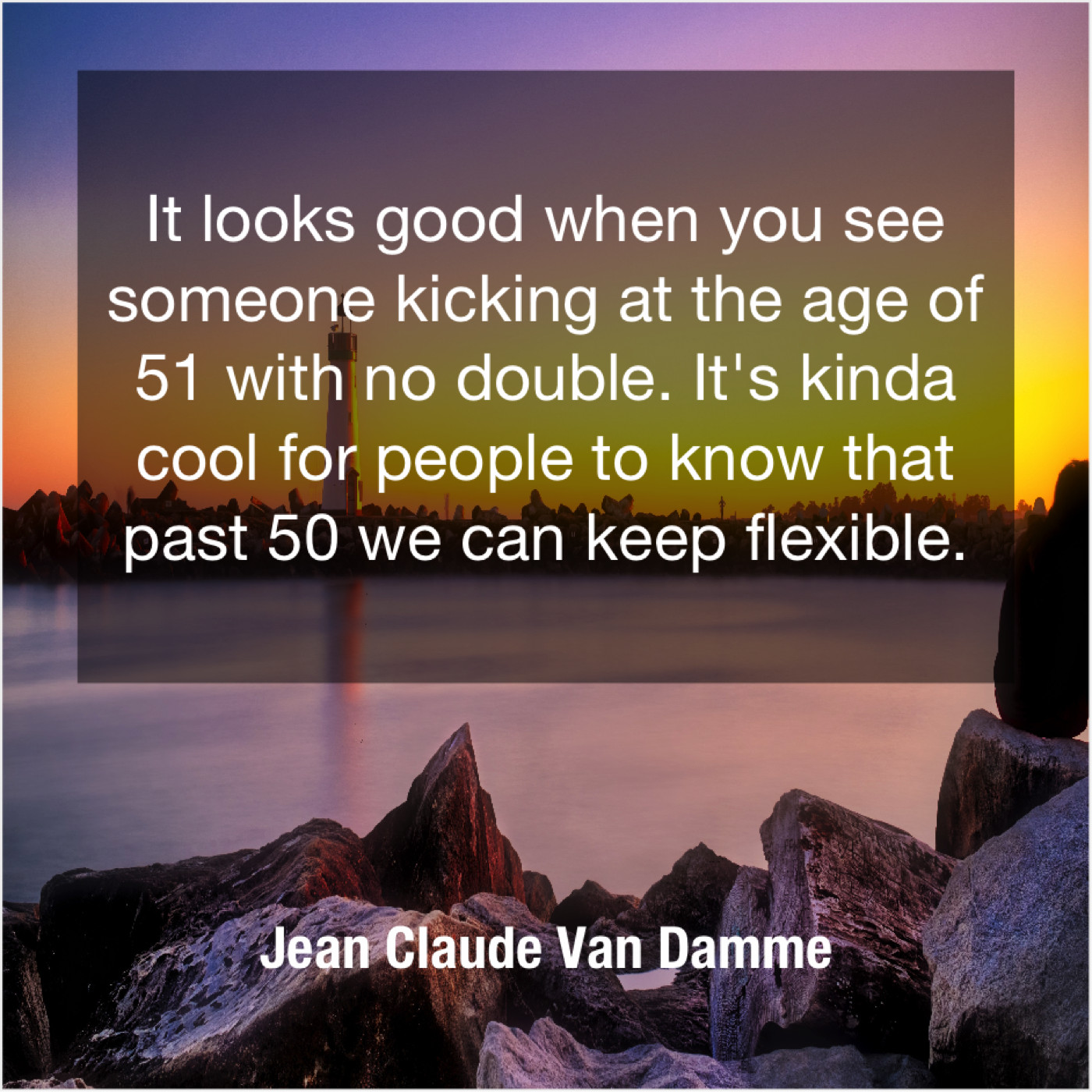 Jean Claude Van Damme Jean Claude Van Damme – It looks good when you… January 20, 2019 admin “It looks good when you see someone kicking at the age of 51 with no double. It’s kinda cool for people to know that past 50 we can keep flexible.”-Jean Claude Van Damme
