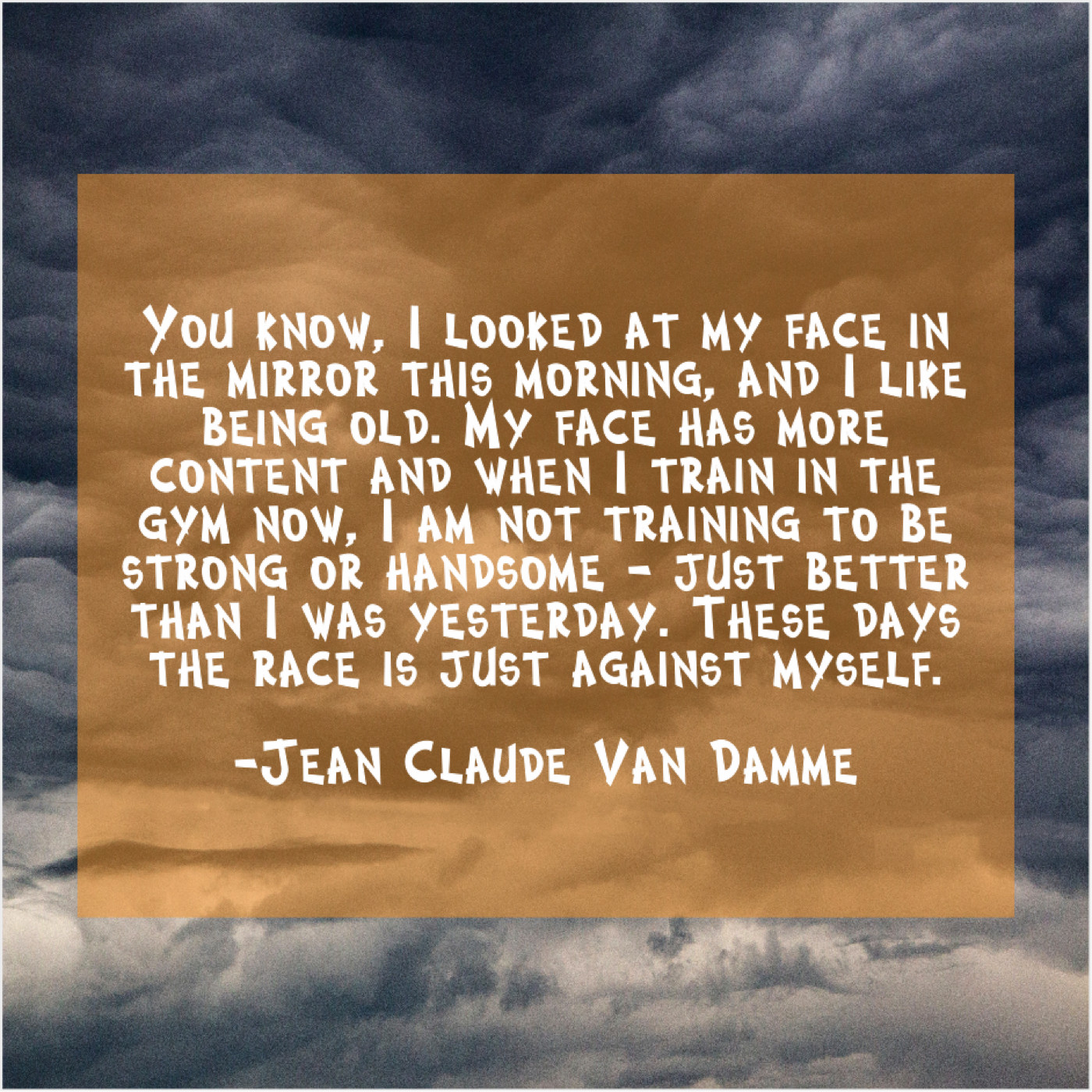 “You know, I looked at my face in the mirror this morning, and I like being old. My face has more content and when I train in the gym now, I am not training to be strong or handsome – just better than I was yesterday. These days the race is just against myself.”
