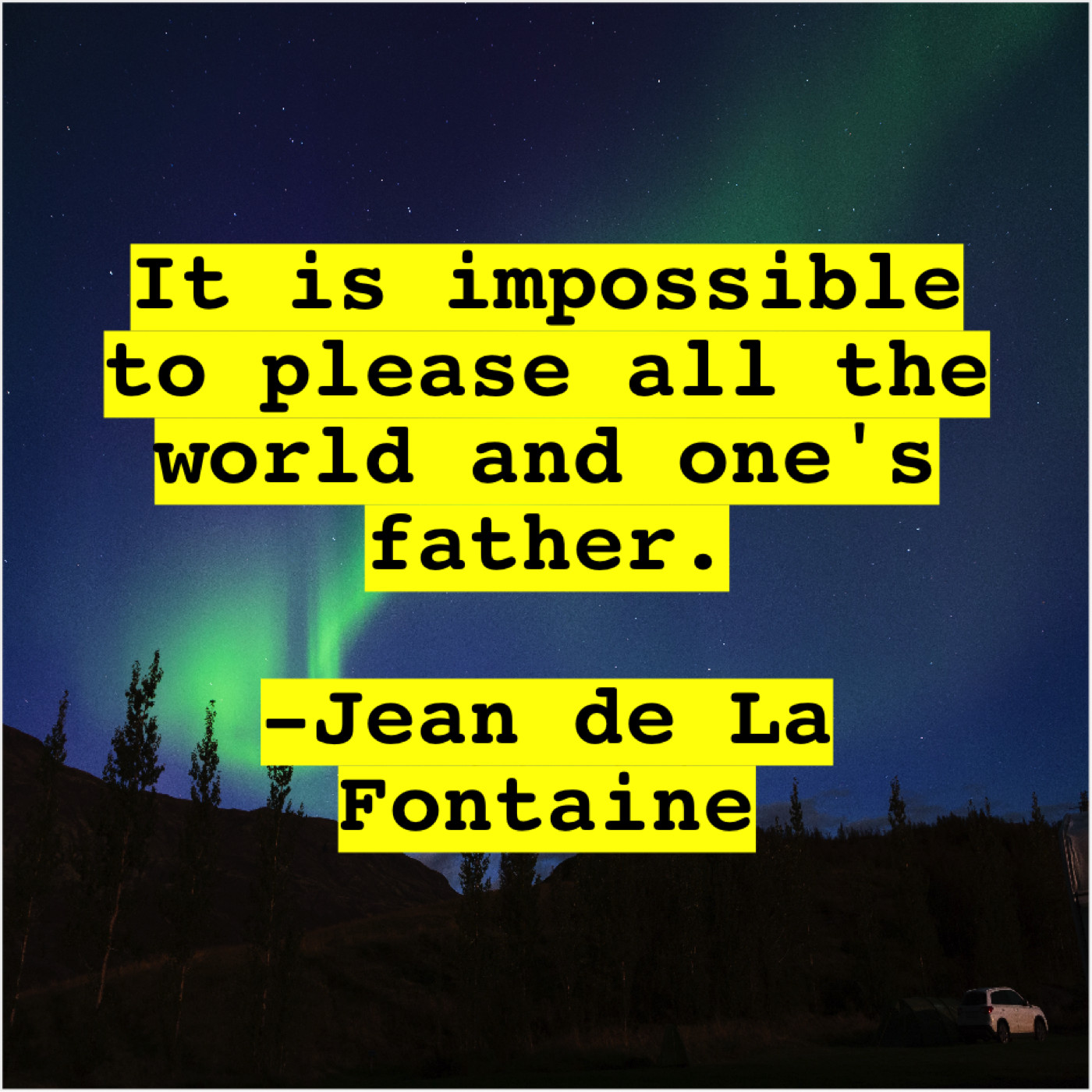 Jean de La Fontaine Jean de La Fontaine – It is impossible to please… October 22, 2019 admin “It is impossible to please all the world and one’s father.”-Jean de La Fontaine