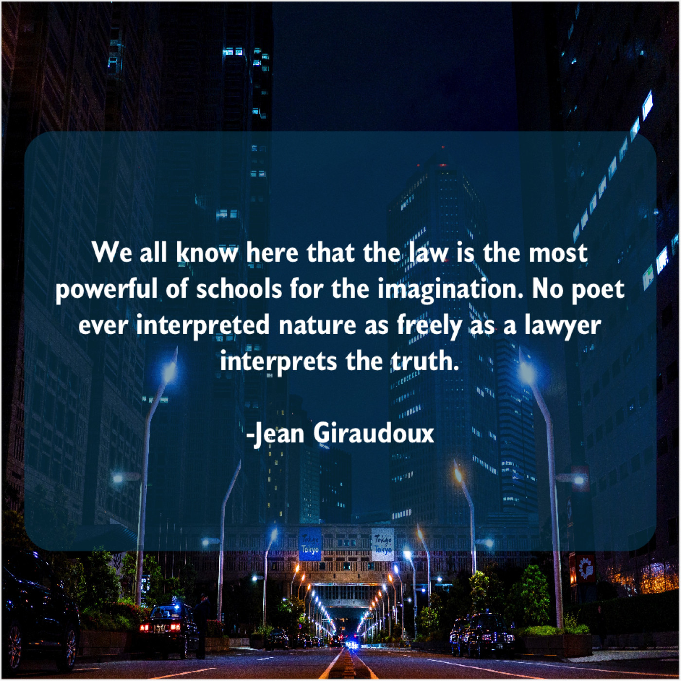 Jean Giraudoux Jean Giraudoux – We all know here that… October 8, 2019 admin “We all know here that the law is the most powerful of schools for the imagination. No poet ever interpreted nature as freely as a lawyer interprets the truth.”-Jean Giraudoux