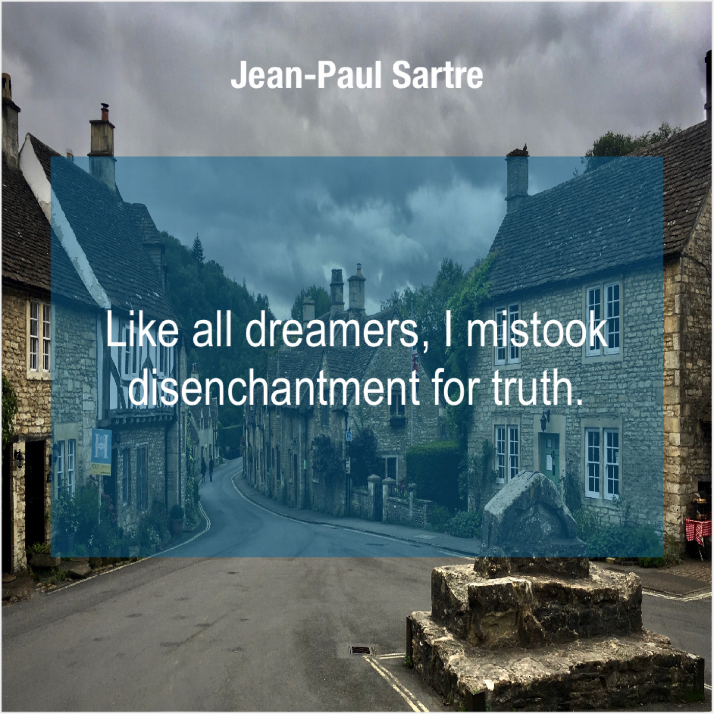 Jean-Paul Sartre Jean-Paul Sartre – Like all dreamers, I mistook… August 1, 2019 admin “Like all dreamers, I mistook disenchantment for truth.”-Jean-Paul Sartre